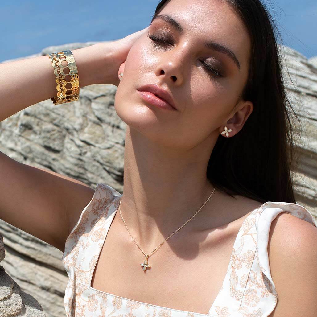 MURKANI - Desert Flower - Small Mother of Pearl Earrings | Gold