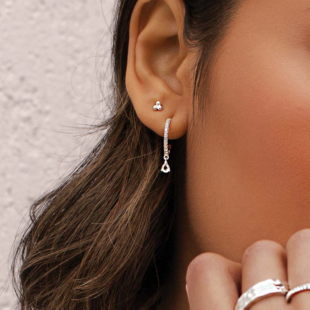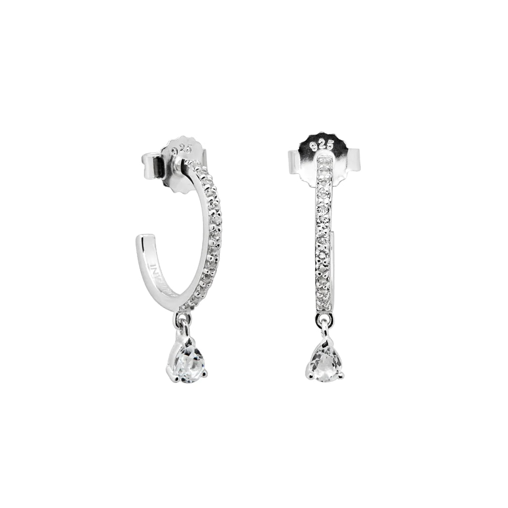 Hoop earrings with tear drop pendant featuring White Topaz.