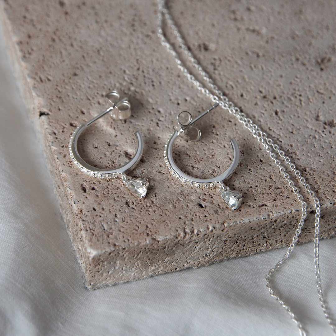 MURKANI - Teardrop White Topaz Hoops | Silver