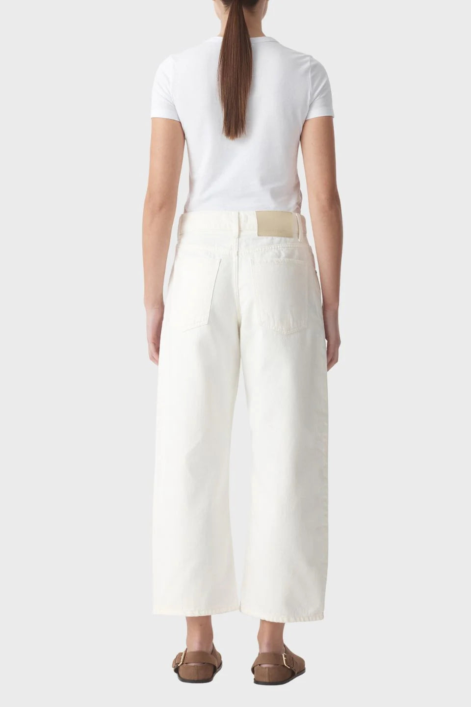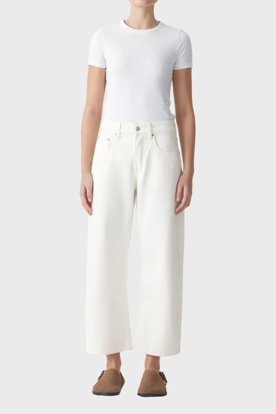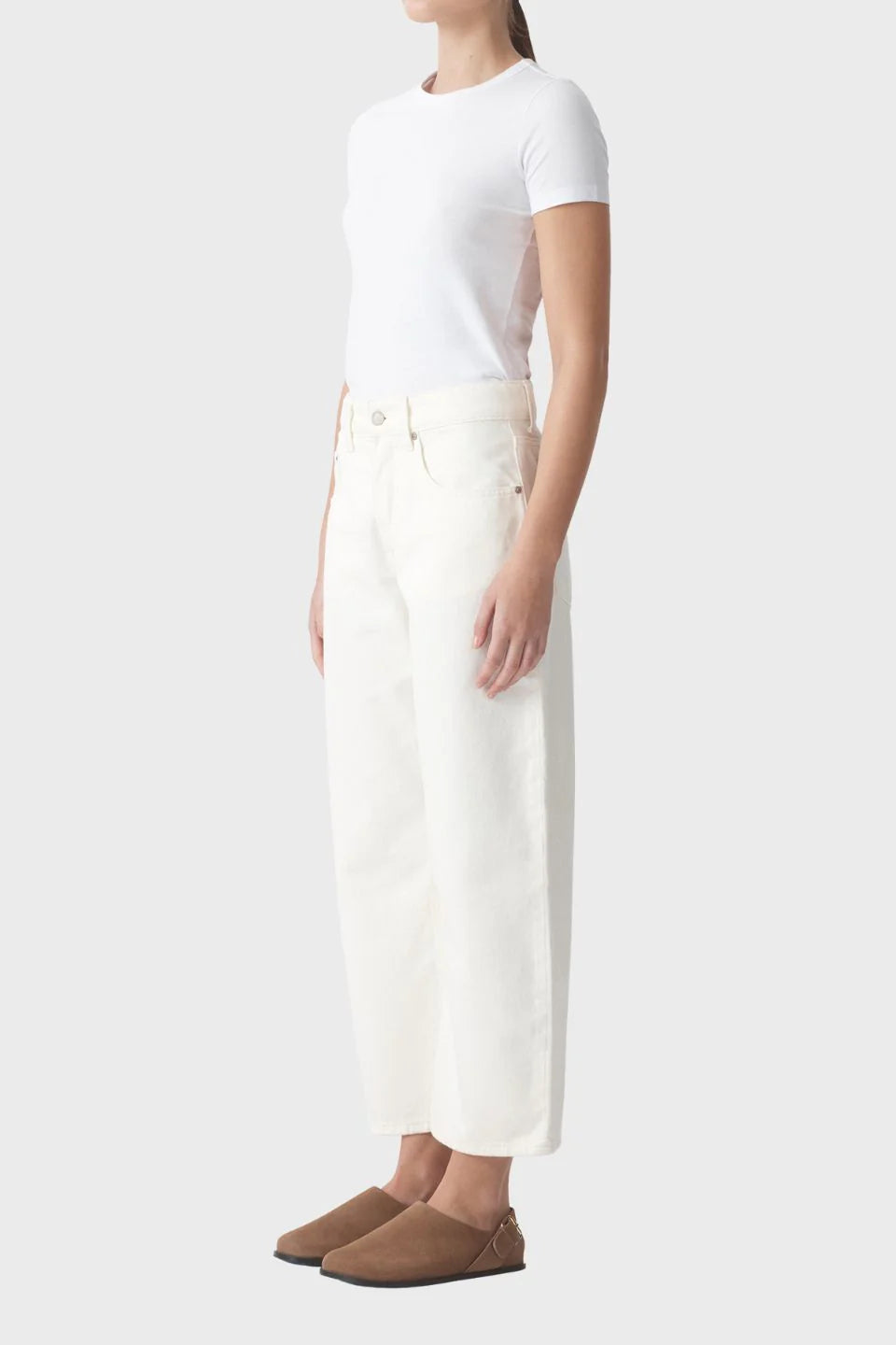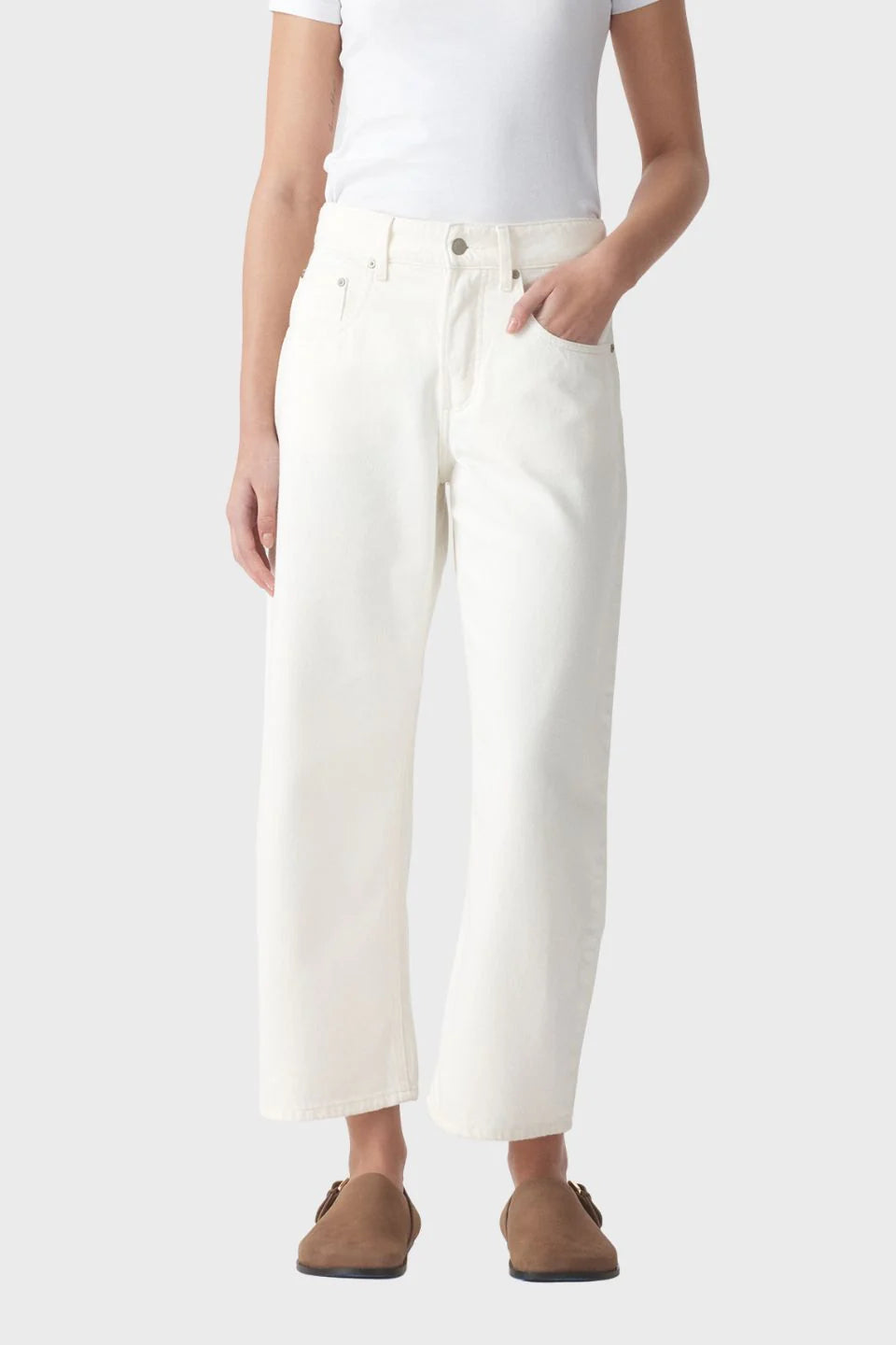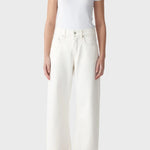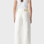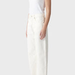 The easy wide leg jean. The Nadia Jean sits below the navel, is relaxed through the hip and leg, with a curved wide leg profile and finishes at the ankle. Features a button fly. Crafted from premium rigid denim.