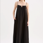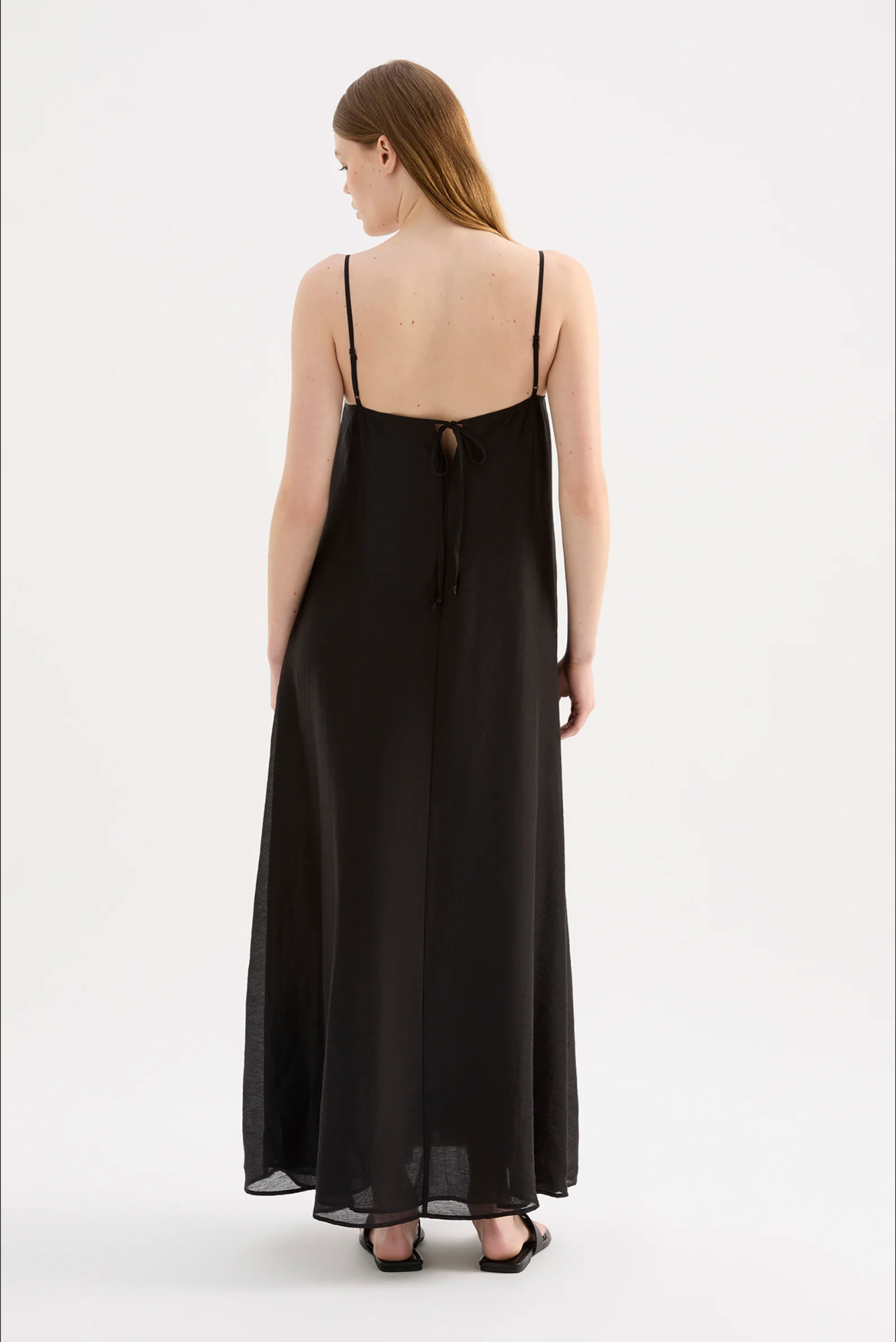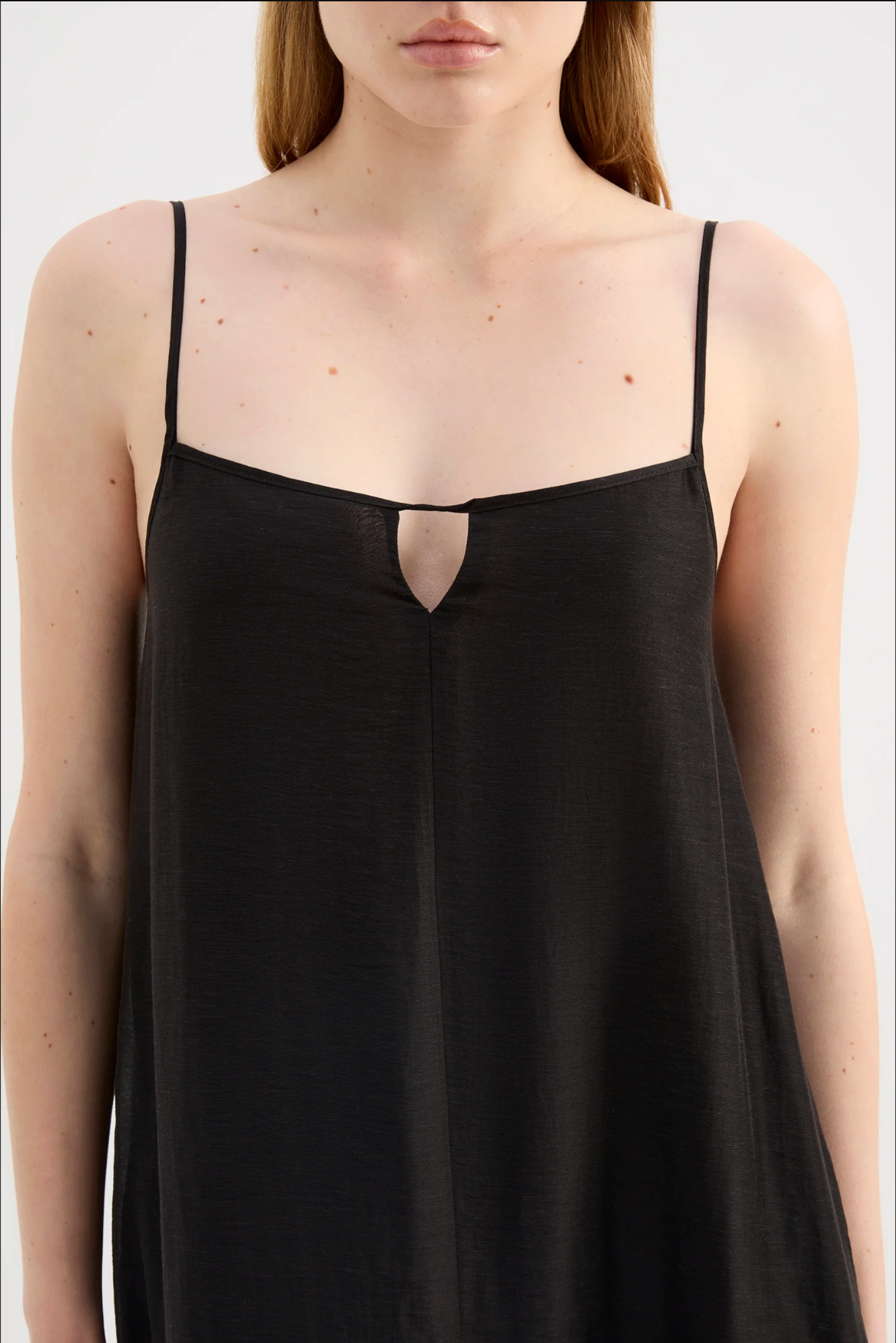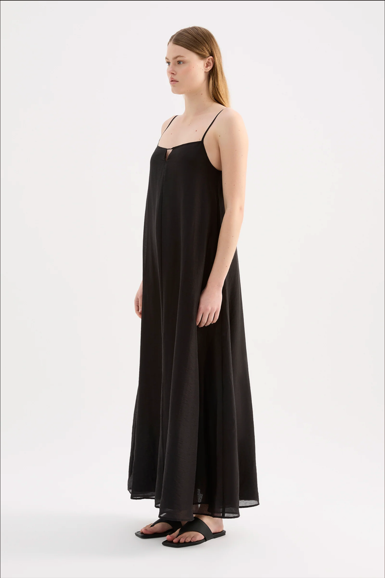 The Axel Maxi Dress is made from a light weight lyocell blend fabric which is slightly sheer and has a smooth hand feel. The silhouette is relaxed with a billowing skirt finishing at ankle length. Features include side seam pockets, adjustable straps, back tie and triangle cut out at centre front neckline. This dress is fully lined.