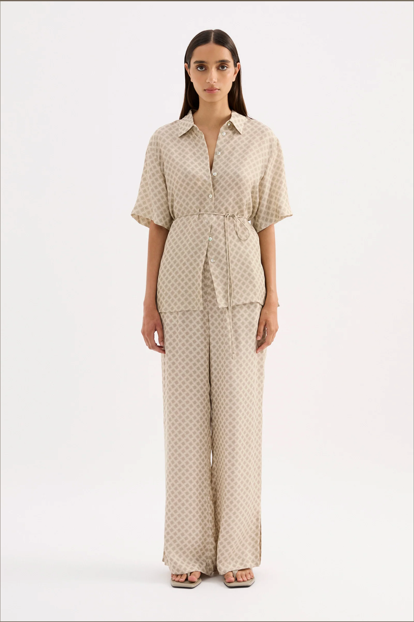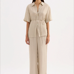 The Cosmos Cupro Pant is made in our signature cupro fabrication in our exclusive Cosmos print. The silhouette is a relaxed wide leg, full length pant. Features include an elasticated waistband, side seam pockets and slits at hem.
