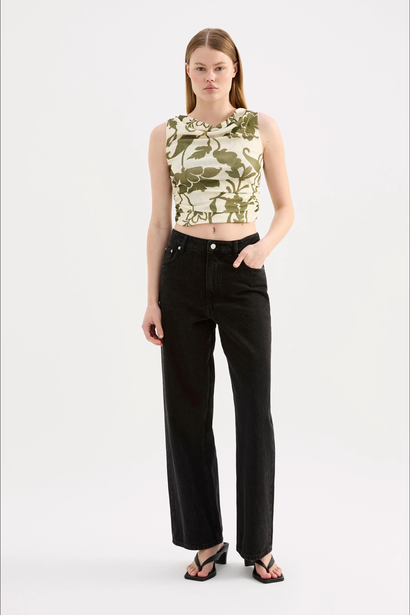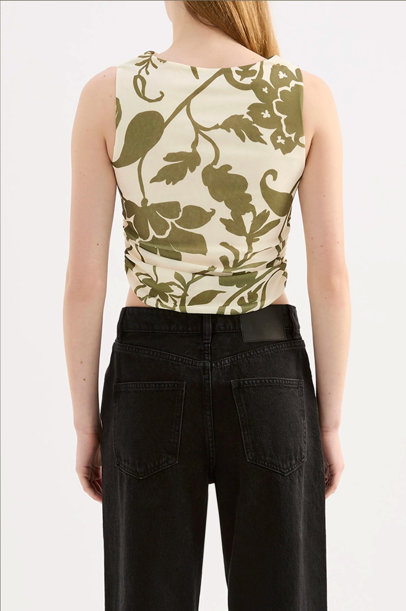 The Dahlia Mesh Top is made from a stretch jersey with a dry hand feel in our exclusive Dahlia print. The silhouette is a form fitting top, which is cropped in length. Features include a high cowl neckline and soft draped gathering across the body. This top is fully lined.