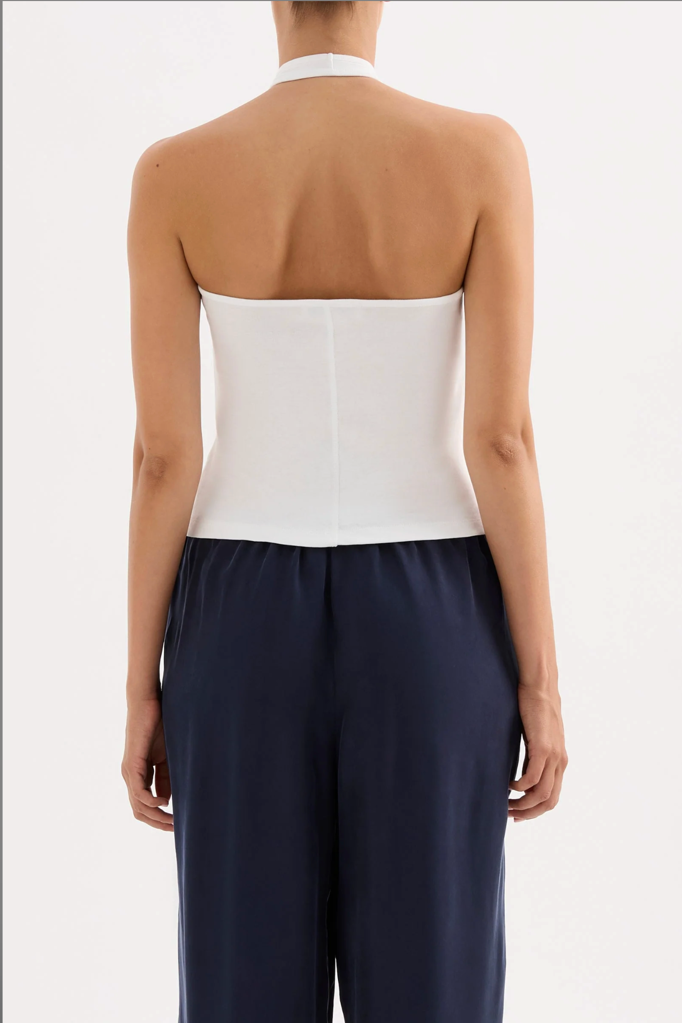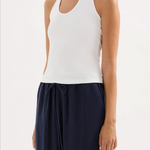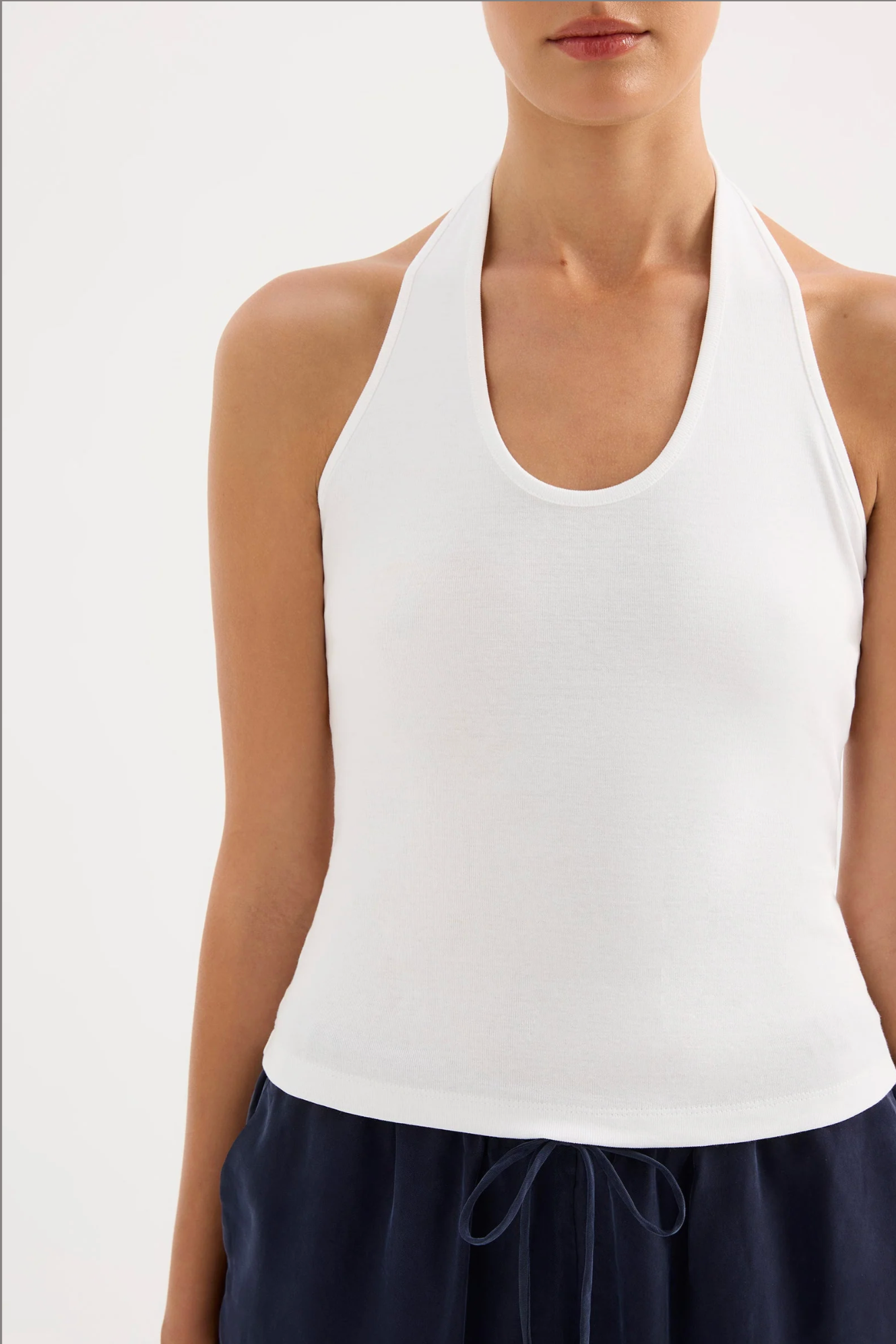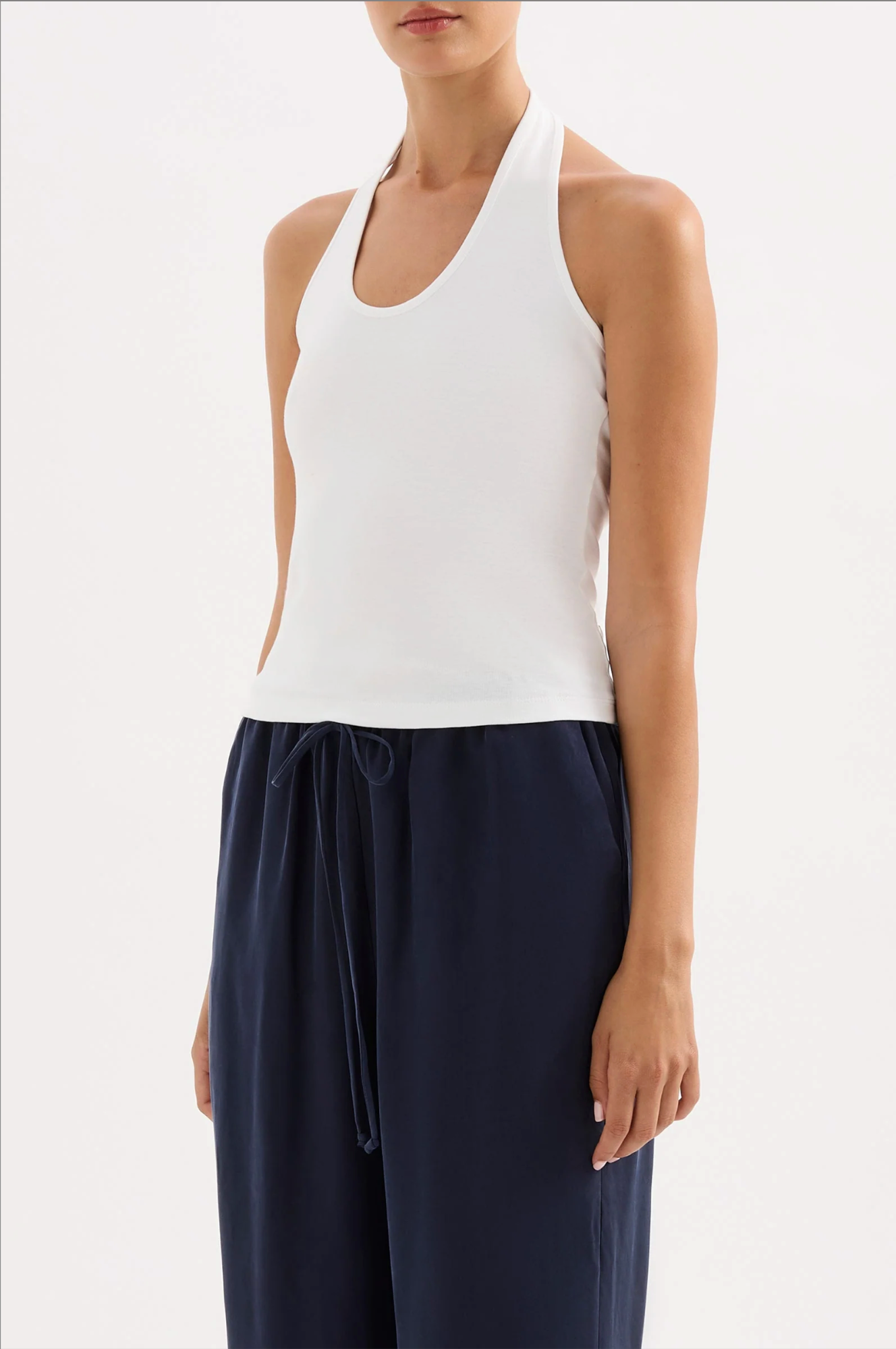 The Gaia Tank is made from a lightweight organic cotton jersey, which has a soft, breathable hand feel. The silhouette is a classic slim fitting tank finishing on the hips. Features include a thick halter neck and low scoop neckline.