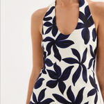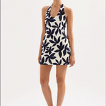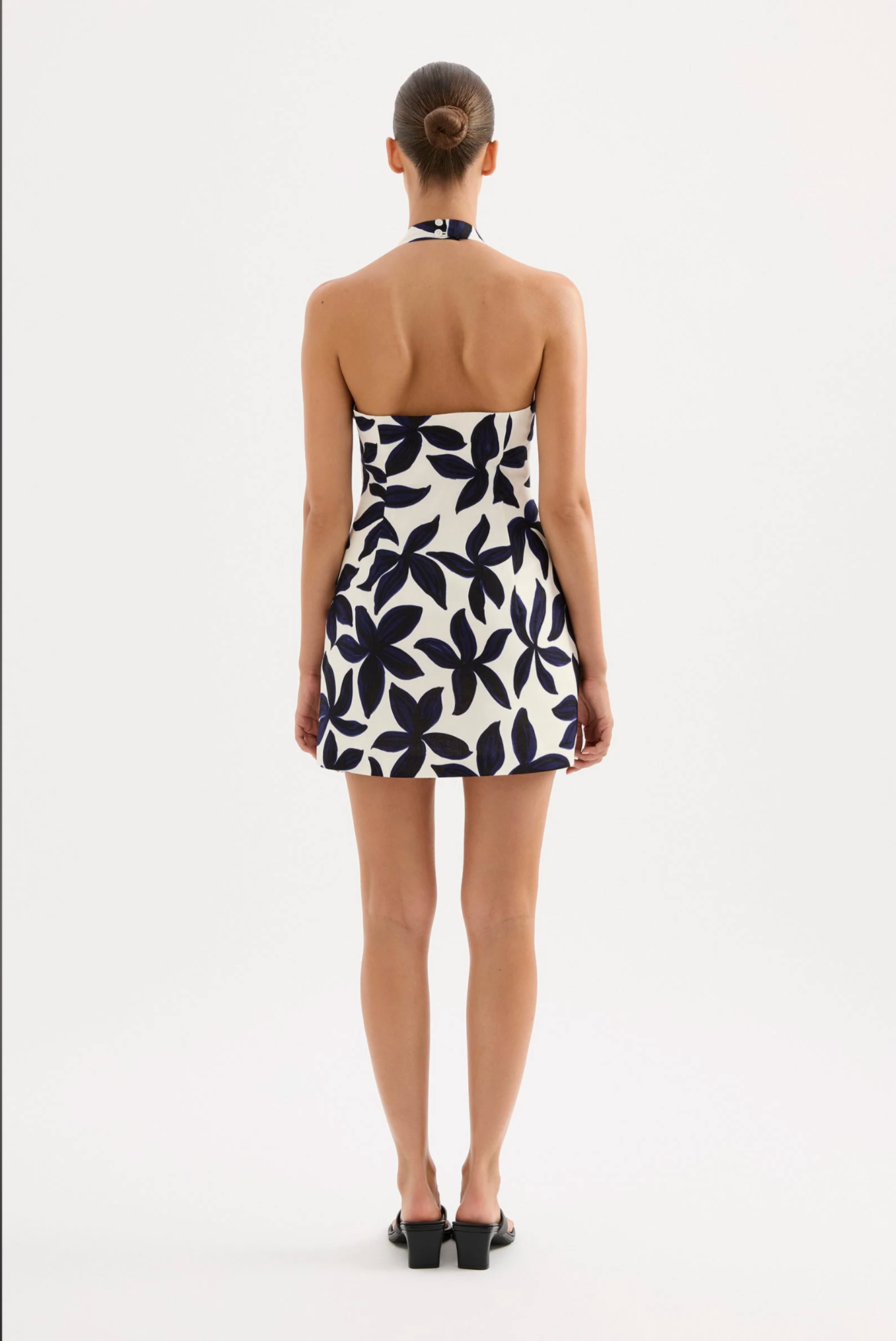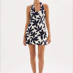 The Odessa Linen Mini Dress is made from a linen blend fabrication in our exclusive Odessa print. This silhouette is slim fitting with an A-line mini skirt. Features include a deep scoop neckline with halter neck straps, invisible side seam zipper and adjustable buttons at back neck.