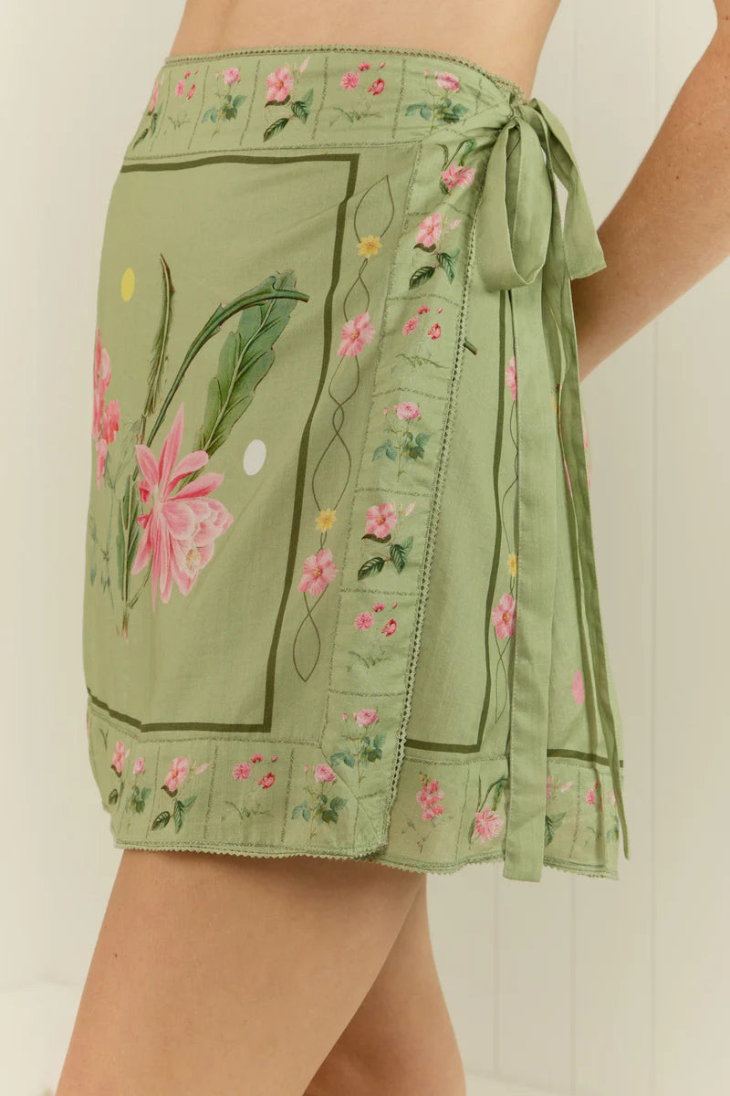 PALM NOOSA - Lily Wrap Skirt - Green Floral Tile