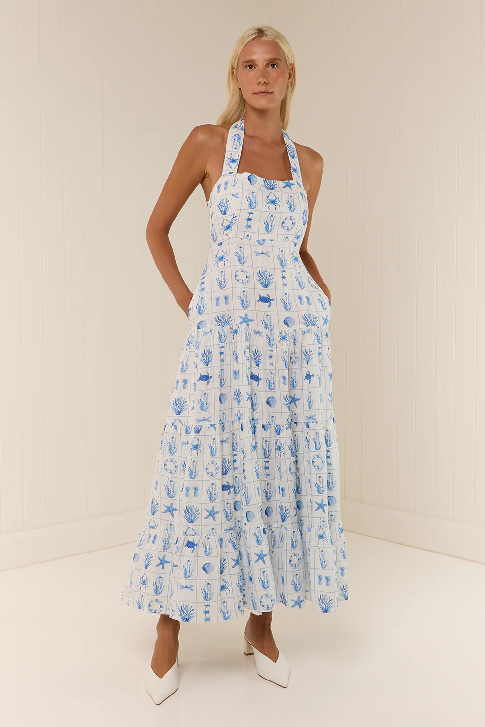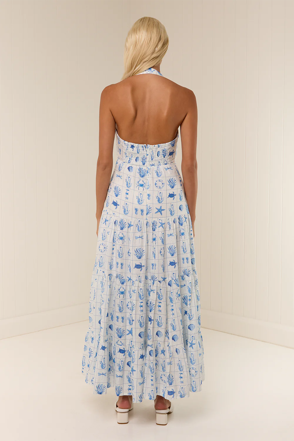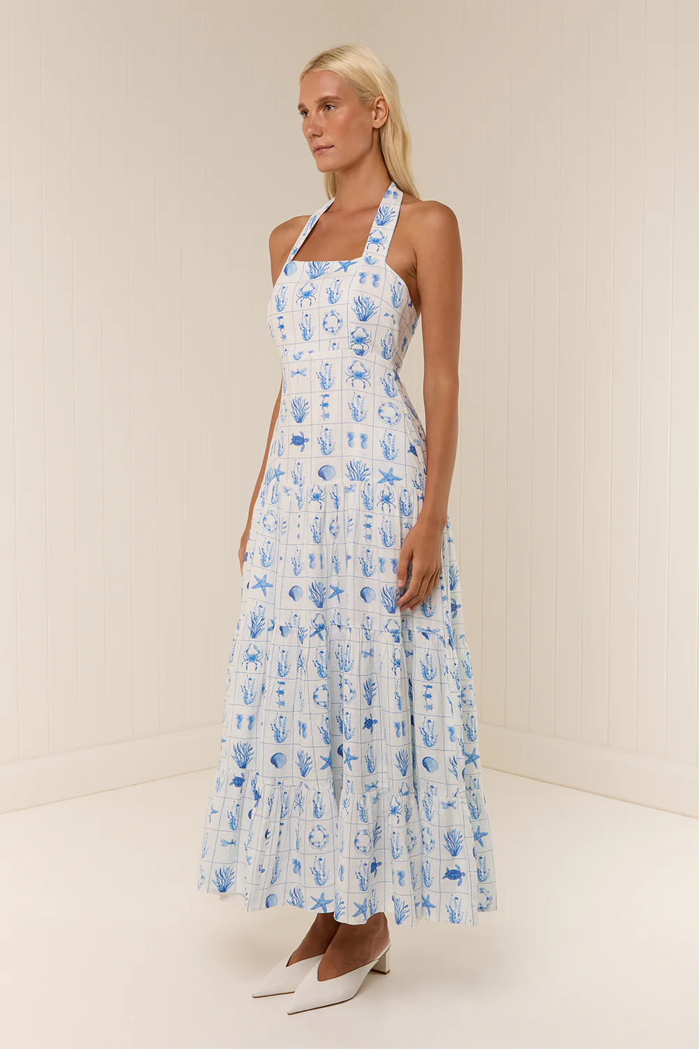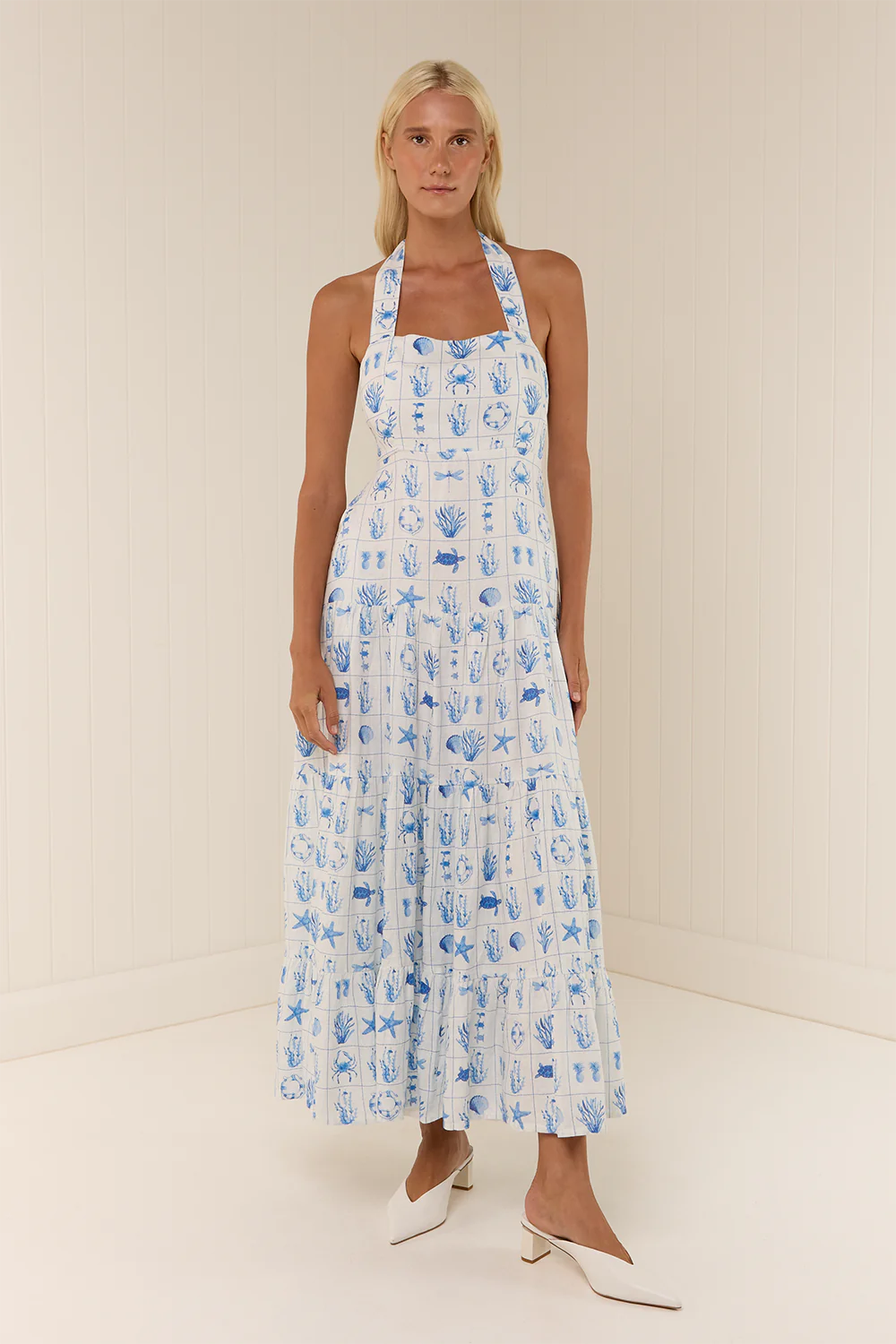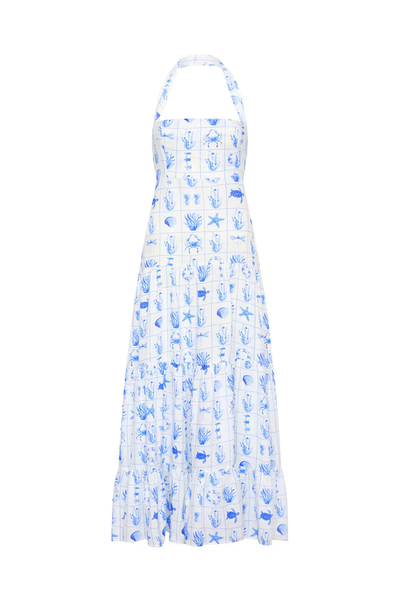 The Willow Dress is crafted from a premium linen, printed in our exclusive Chalkie's Tile print. Featuring a halter neck design and flowing full skirt for a flattering fit. The Willow Dress is fitted in the bodice and waist, with an elasticated panel through the back for ease of fit. Please refer to our size and fit guide for further fit details.