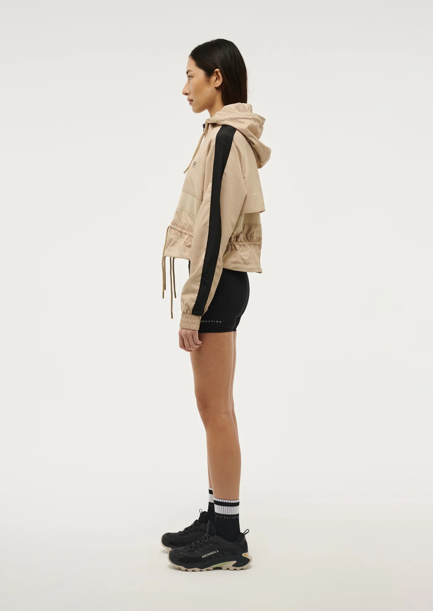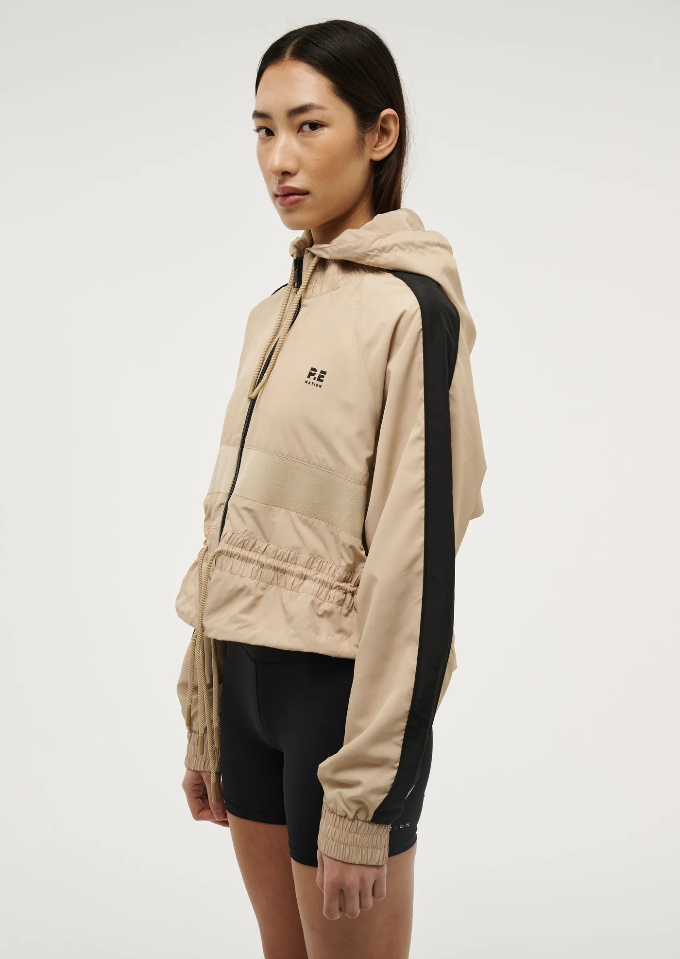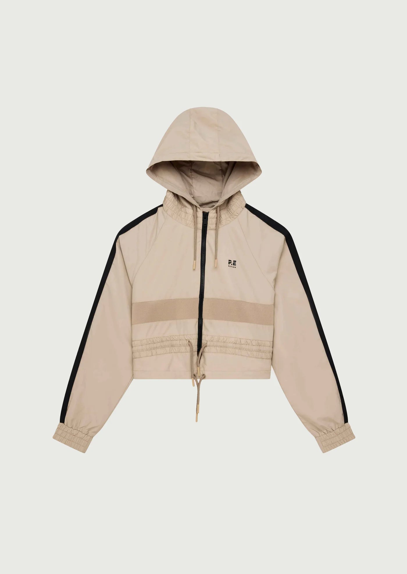 The Cropped Man Down Jacket in Sesame comes as part of our RE/CREATION Collection. Made from our signature spray fabric, this best selling cropped style features contrast panelling on the body, internal pocket and a drawcord waist and neckline. Perfect for layering, wear this wardrobe staple with activewear for the ultimate P.E Nation athleisure look.