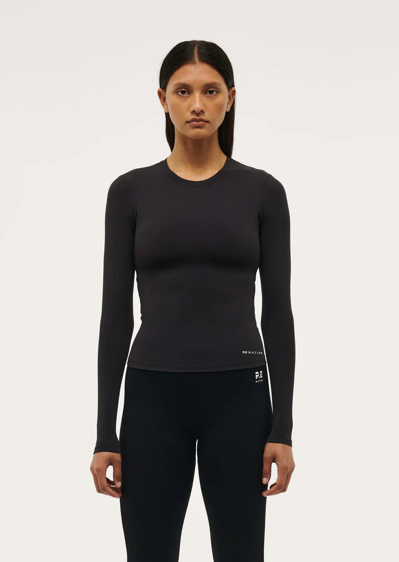 The Foundation Long sleeve Top in Black comes as part of our BASELINE Collection. Designed in our luxuriously soft fabrication, Body Luxe, this slim fit long sleeve active tee will offer all day wearing comfort. Style the tee with an active legging or pair with a cargo pant for an elevated off-duty look.