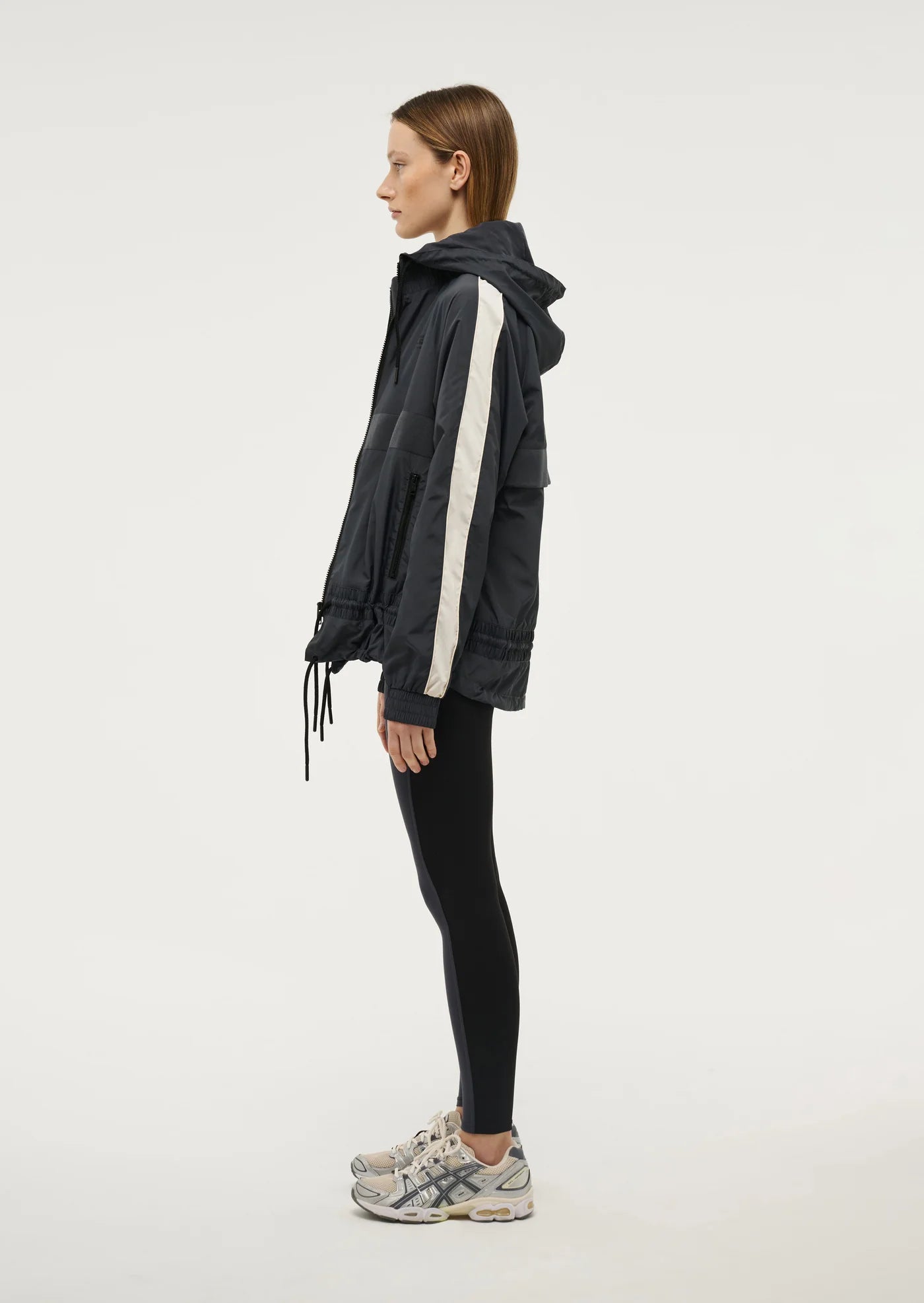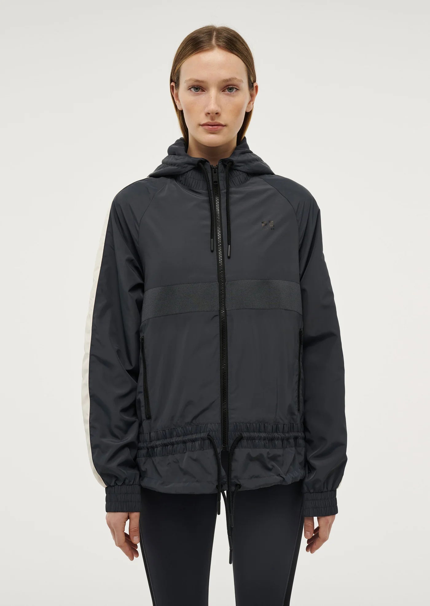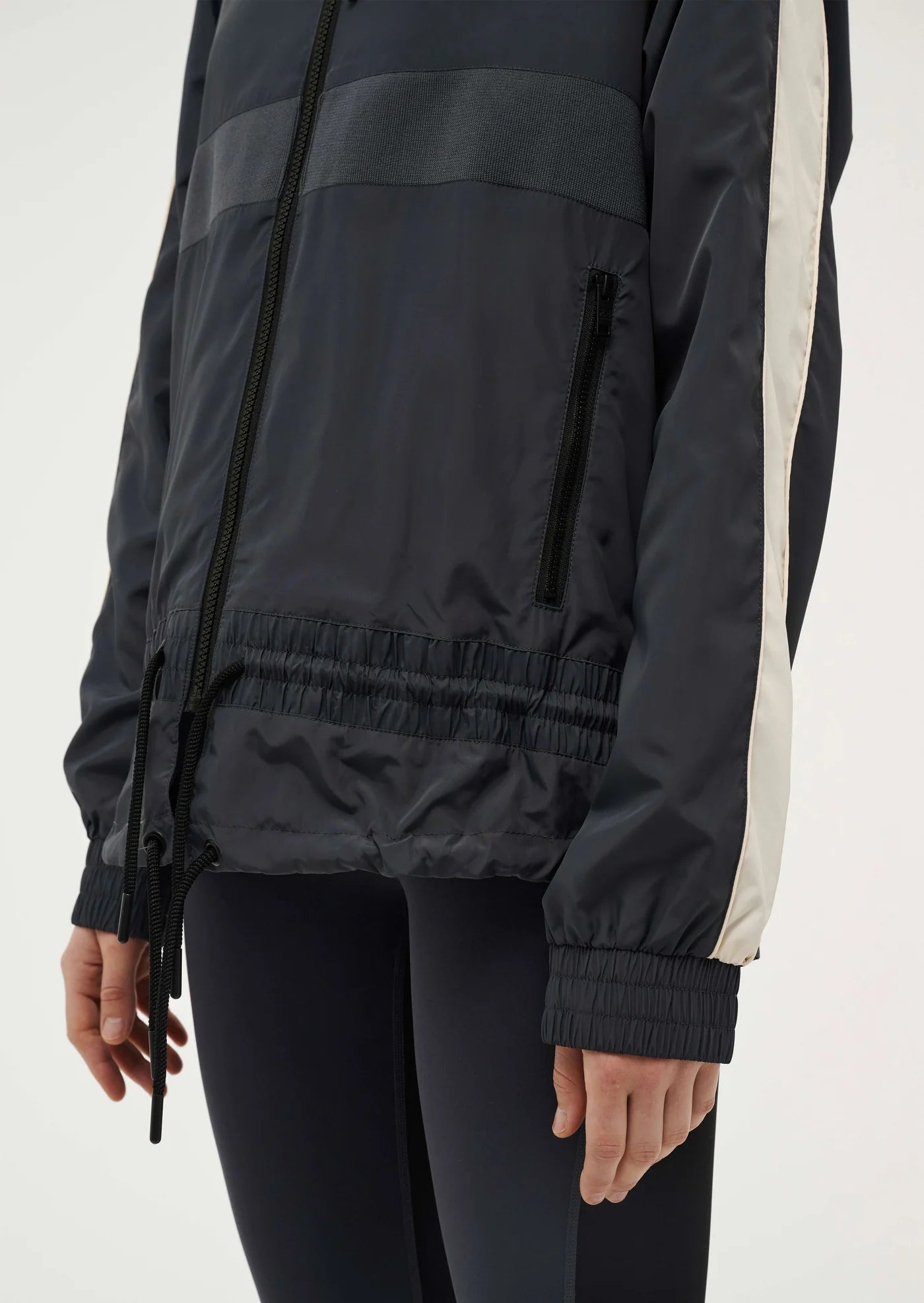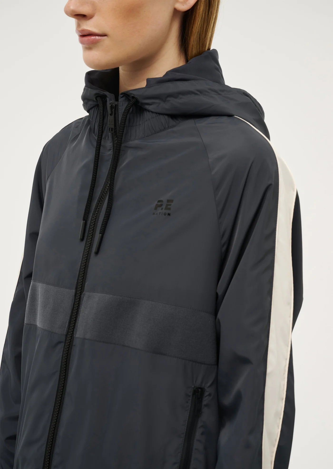 The Man Down Jacket in Marine Blue comes as part of our RE/CREATION Collection. Made from our signature water resistant spray fabric, this best selling style features contrast panelling on the body, zip up pockets and a drawcord waist and neckline. Perfect for layering, wear this wardrobe staple with activewear for the ultimate P.E Nation athleisure look.