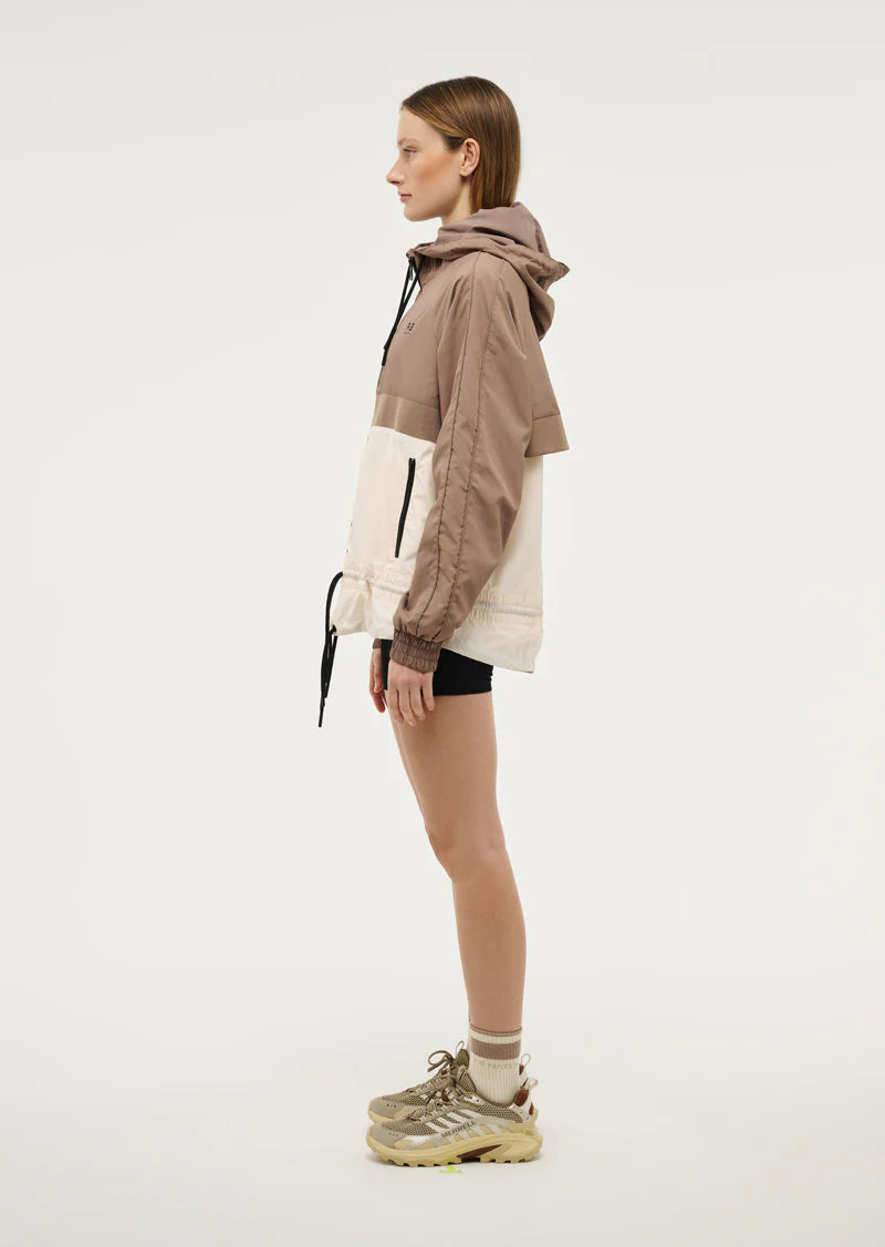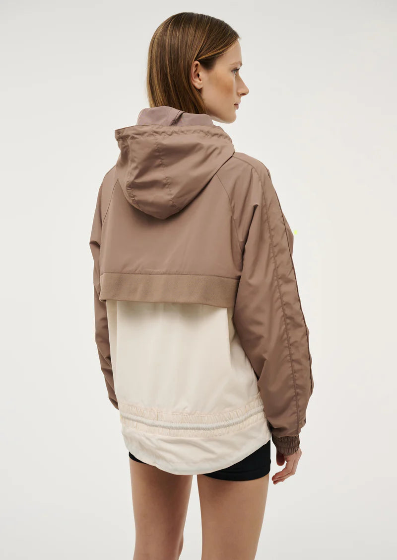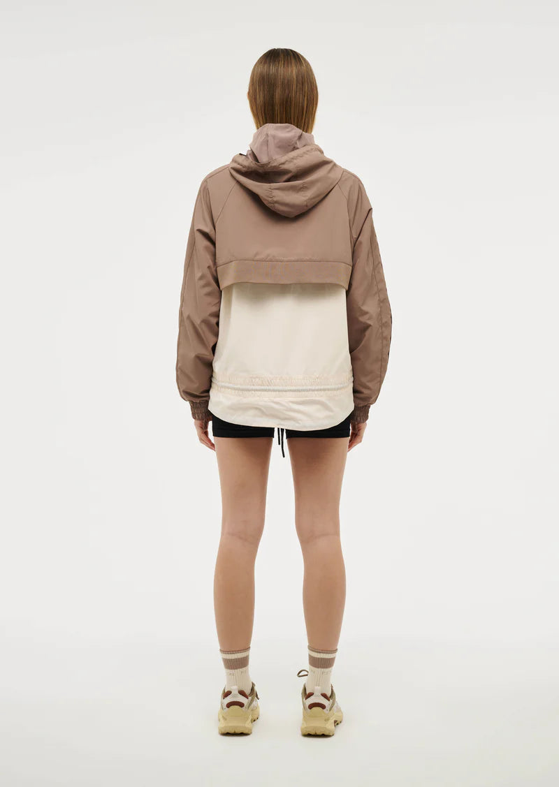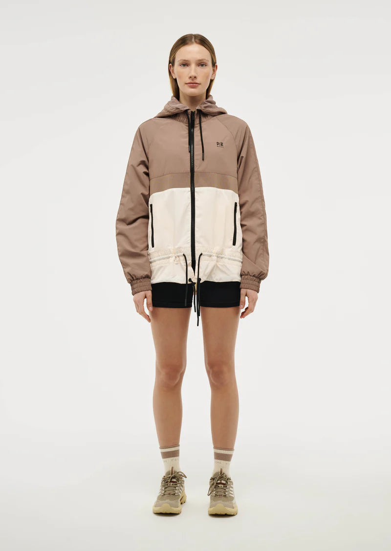 The Man Down Jacket in Taupe comes as part of our RE/CREATION Collection. Made from our signature water resistant spray fabric, this best selling style features contrast panelling on the body, zip up pockets and a drawcord waist and neckline. Perfect for layering, wear this wardrobe staple with activewear for the ultimate P.E Nation athleisure look.
