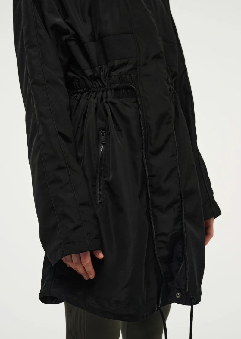The Mid Length Man Down Jacket in Black comes as part of our RE/CREATION Collection. Made from our new heavier weight spray fabrication, this heavy weight jacket features panelling on body and sleeve, zip pockets and a drawcord at the neckline and hem. Ideal for cooler weather, wear your jacket over active wear for an added layer of warmth.