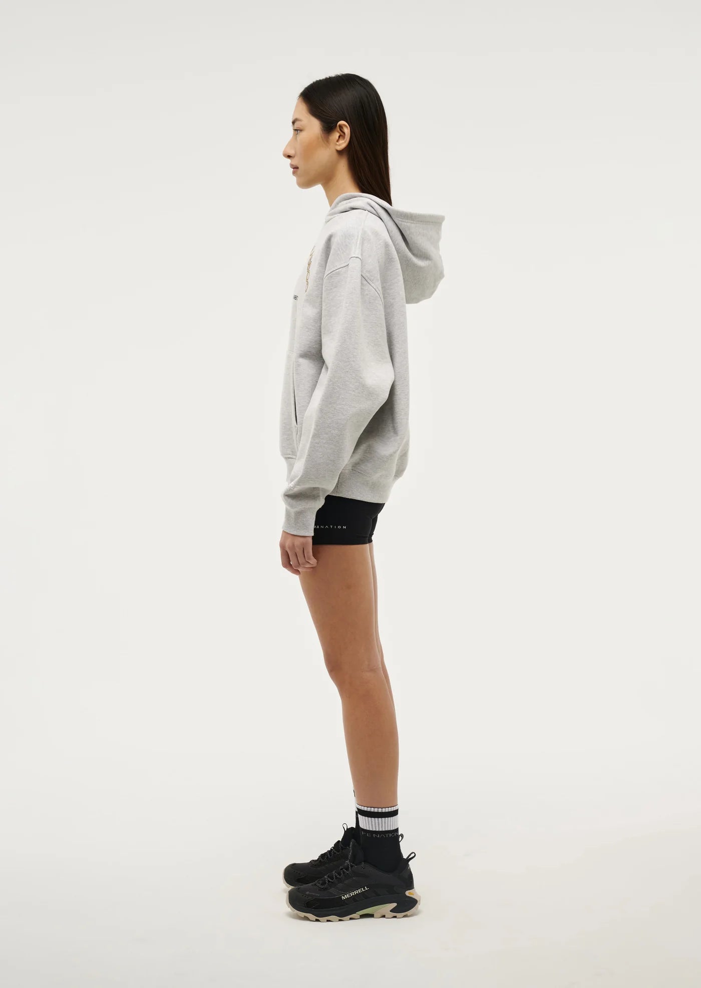 The Outfield Hoodie in Grey Marl comes as part of our RE/CREATION Collection. Crafted in our soft new cotton blend fleece, this oversized hoodie features rib cuffs, a centre front graphic logo and a kangaroo pocket. Ideal for lounging.