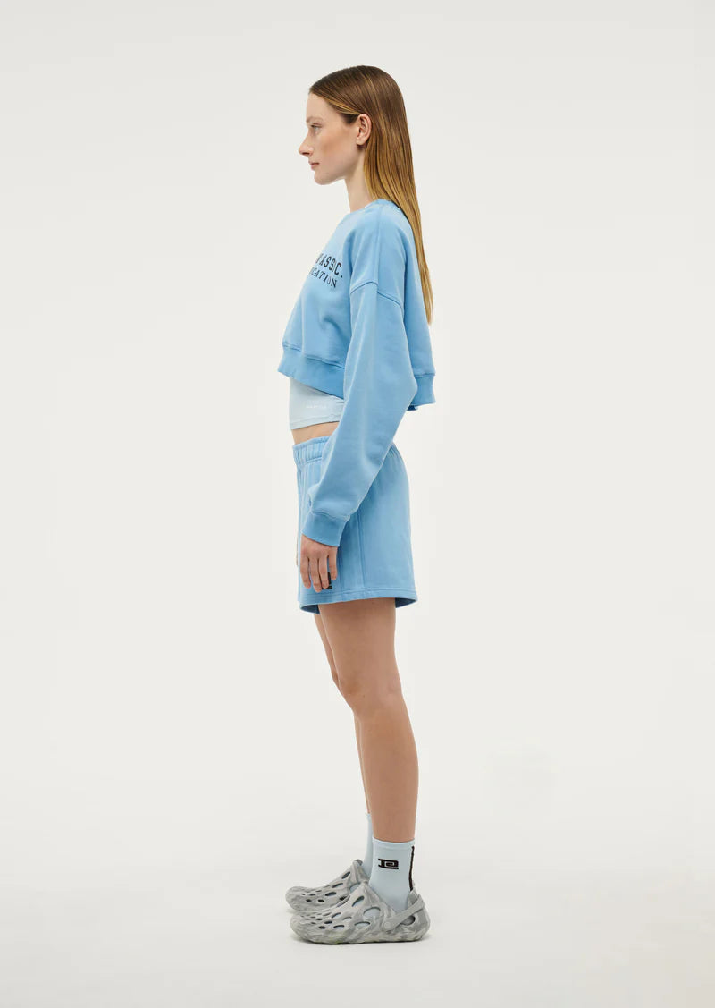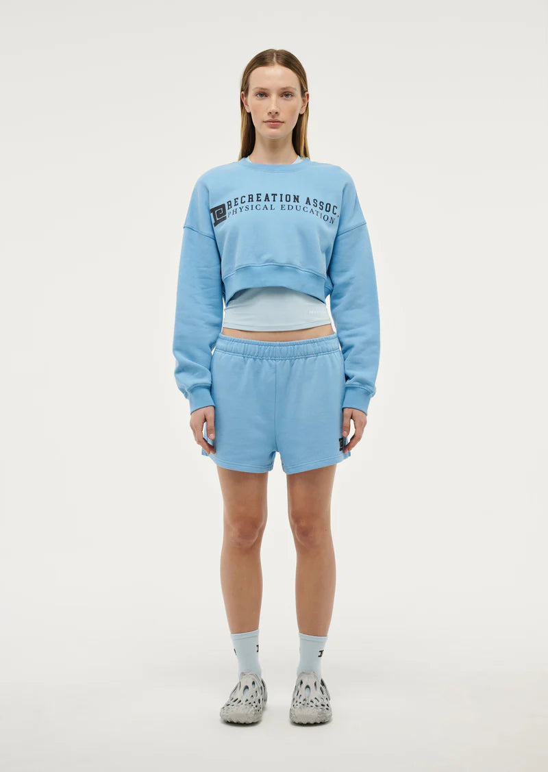 The Rally Sweat in Bright Blue comes as part of our RE/CREATION Collection. Made from our new peachy 100% cotton brushed fleece fabrication, this relaxed cropped sweater features a seasonal P.E Nation graphic at the centre front. Style your sweat with the Millennium Short to complete the set or layer with ease over activewear.