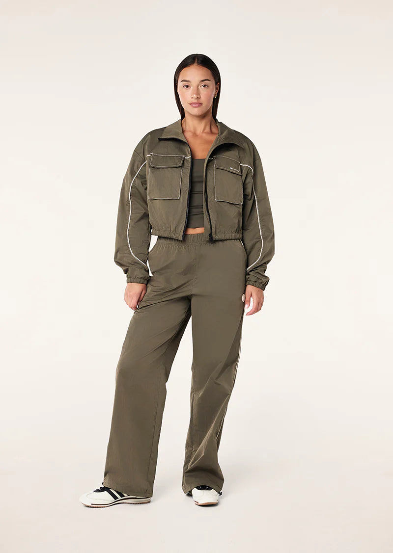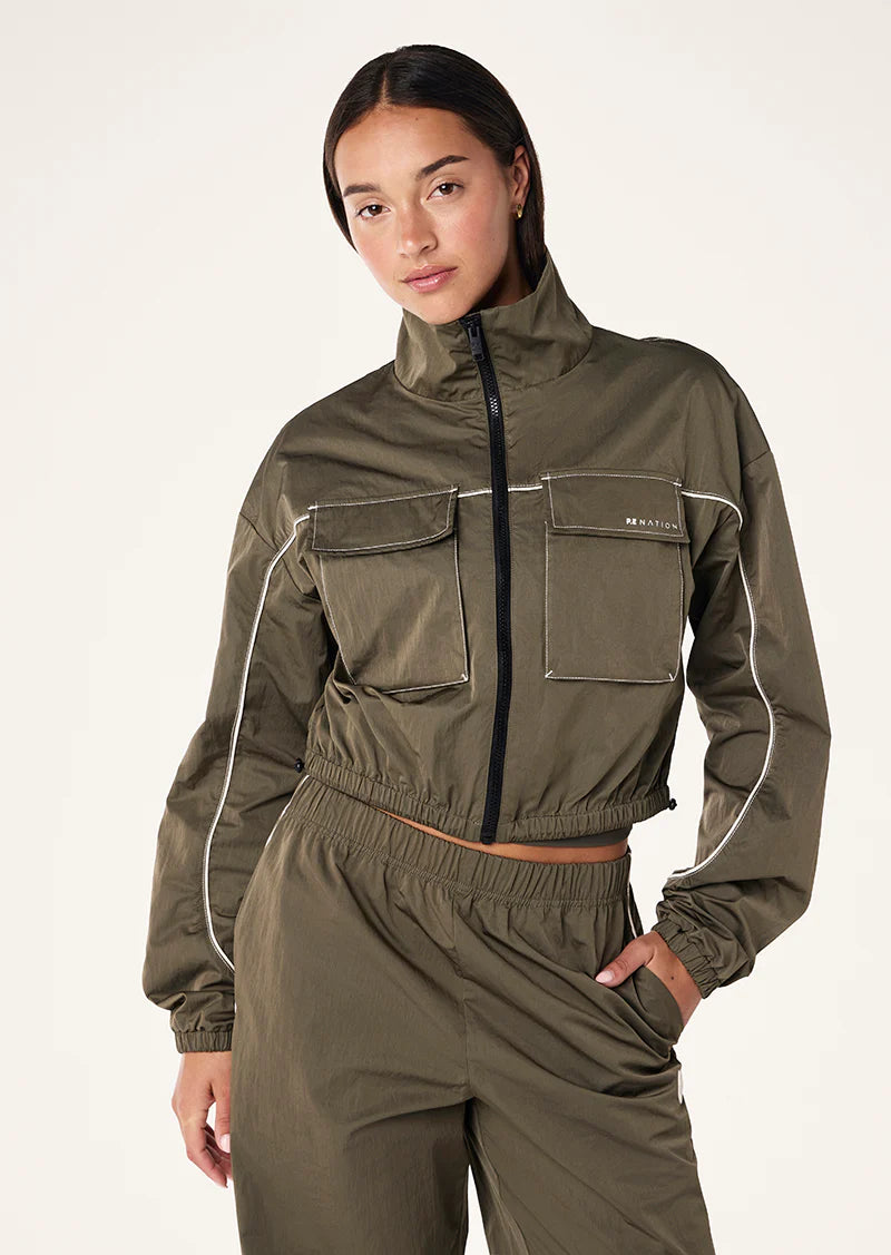 The Recap Jacket in Tarmac comes as part of our FUTURE MODERN Collection. This lightweight, spray-cropped jacket features a central zip for easy layering and two chest patch pockets for added functionality. The elastic drawcord cinched waist allows for a customizable fit, enhancing your silhouette while keeping you comfortable. Finished with a printed logo at the centre back, the Recap Jacket is perfect for transitioning between workouts and everyday adventures.