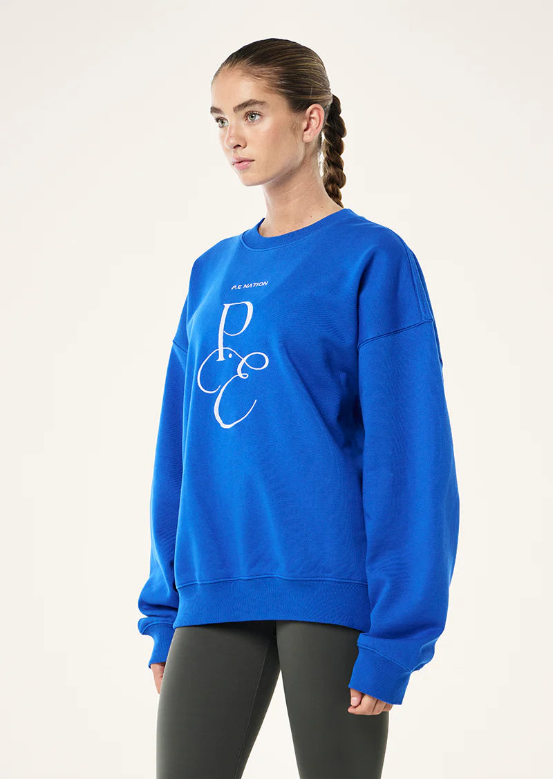 The Southbank Sweat in Royal Blue is an elevated essential for building your basics wardrobe. This oversized fit crew neck sweater features a custom P.E Nation embroidered graphic at centre front. For the complete set, style this sweat with your favourite P.E Legging.