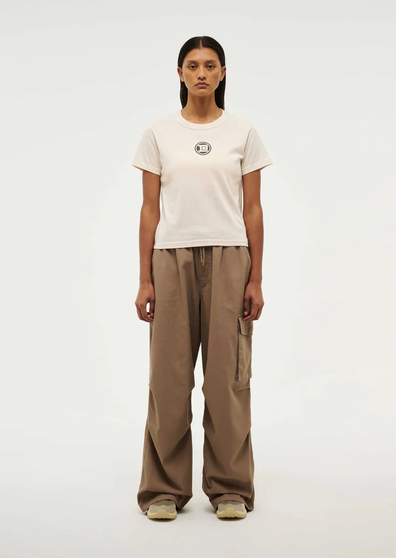 The Sportive Short Sleeve Tee in Washed Whisper White comes as part of our RE/CREATION Collection. Perfectly garment dyed for a loved worn out look, this 100% heavyweight cotton tee features a seasonal P.E Nation logo print. Wear this tee with a cargo pant or pair with a trackpant for a casual loungewear look.