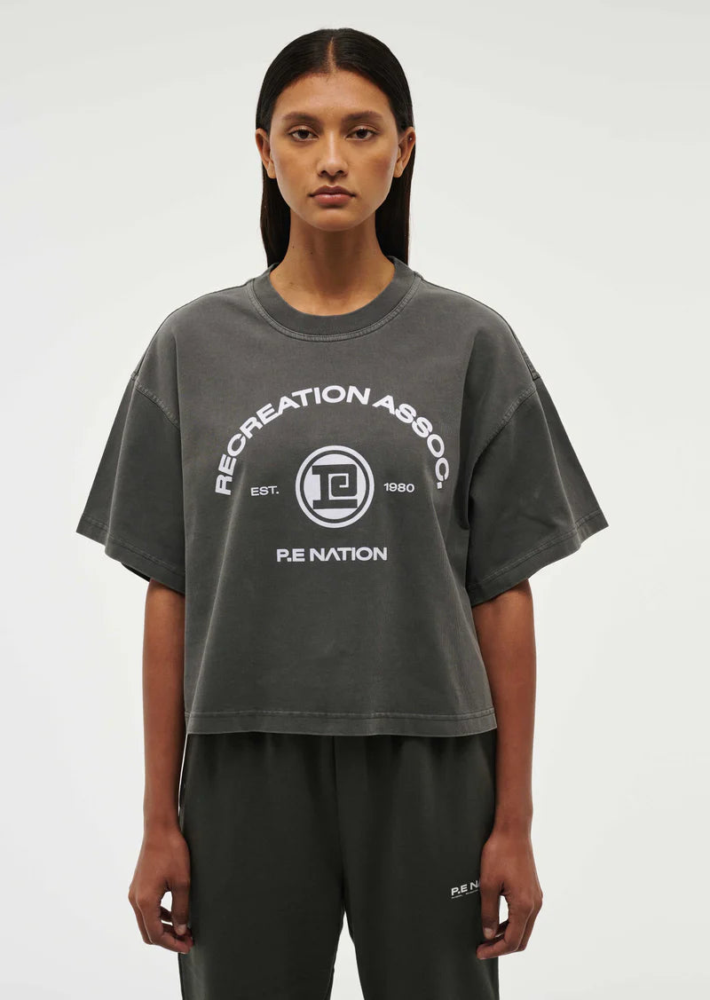 P.E NATION - Throwback Boxy SS Tee - Washed Gunmetal