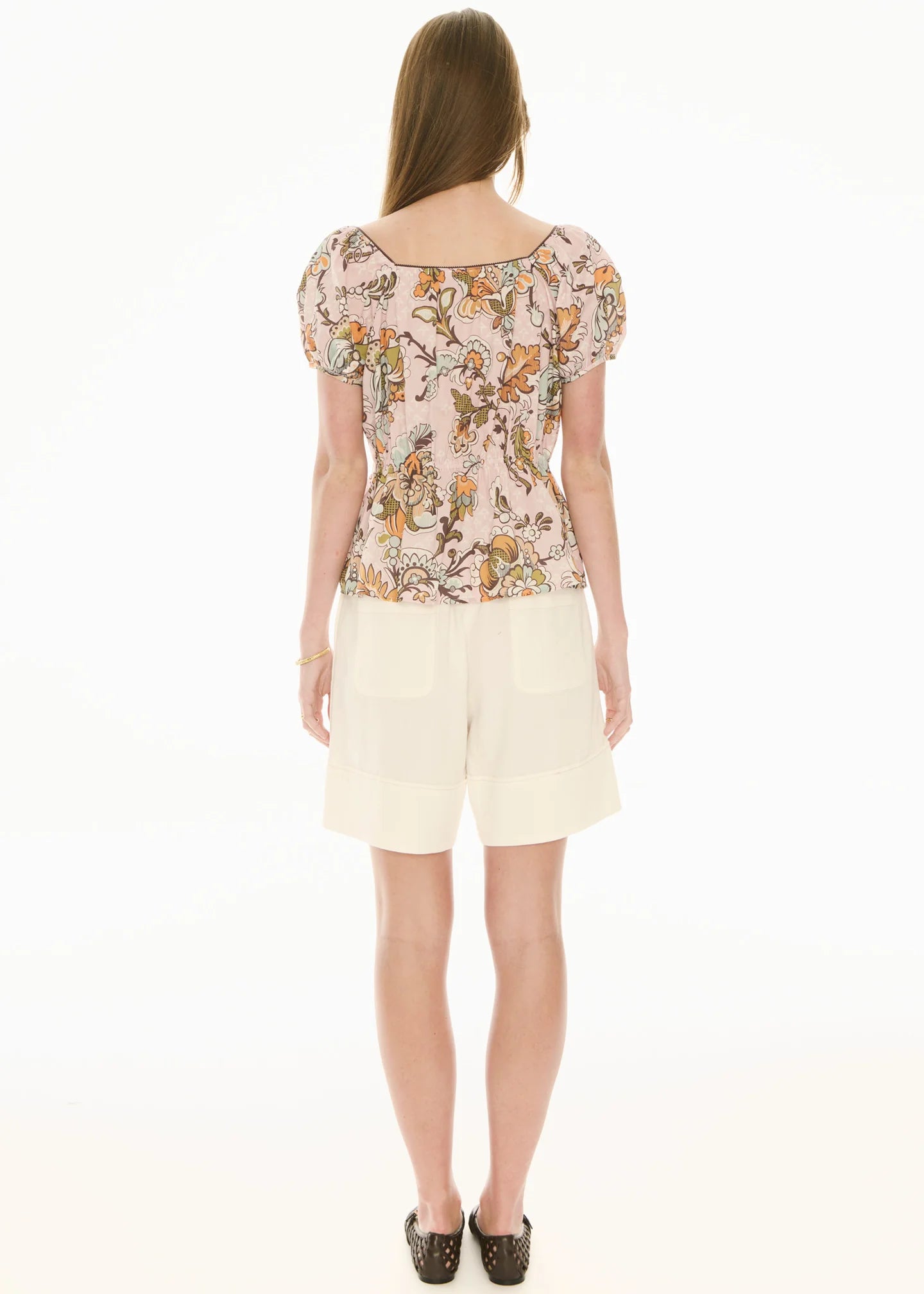 -Mid rise waist with elastic at the centre back for comfort.