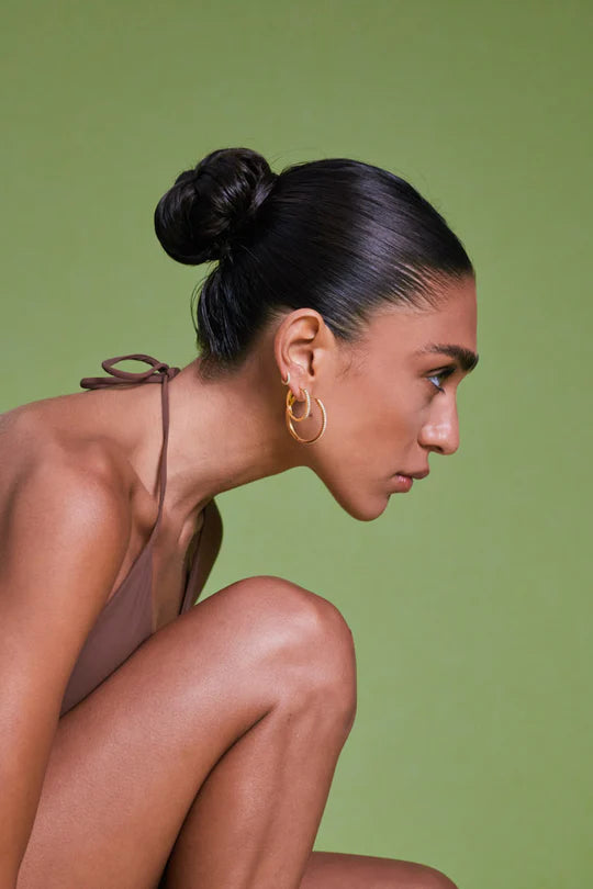 Introducing our highly anticipated Angel Hoops. Designed off the back of some of our most wanted 90's Hoops and Angel Huggies. Featuring a continuous click in hoop with dainty cubic zirconia gems through the front.