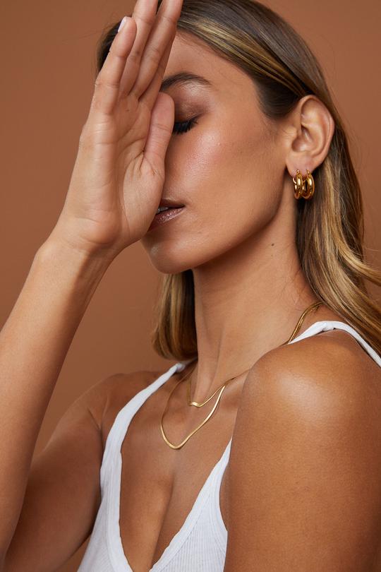For reference: Dominique wears our Everyday Hoops 20mm x2 pairs in her first and second piercings