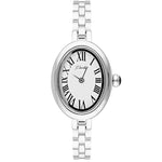 - Sterling silver base with white gold plating. Stainless steel mechanics/movement