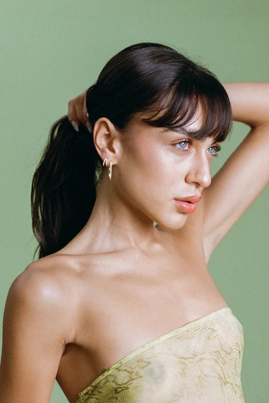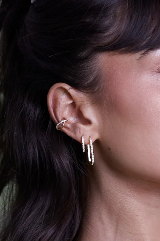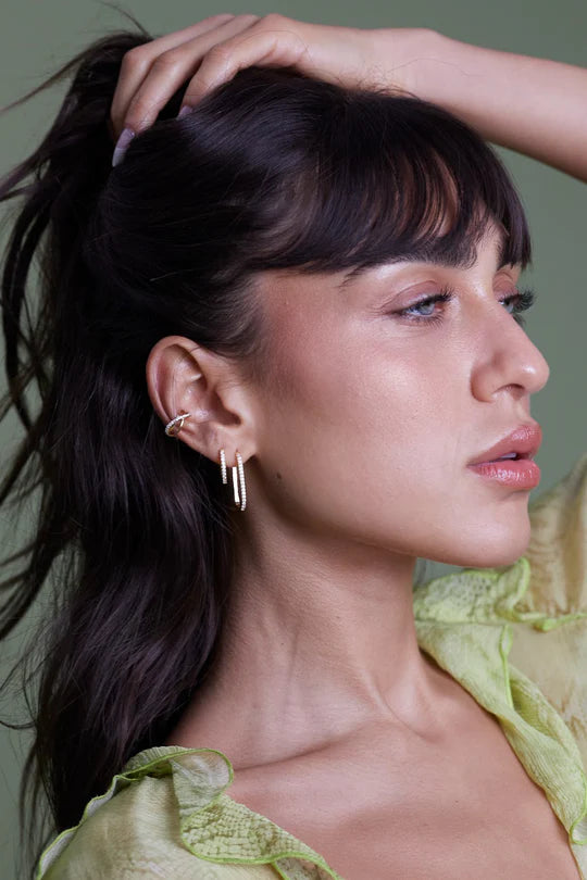 Introducing our highly anticipated Oval Angel Hoops. Designed off the back of some of our most wanted Angel Huggies. Featuring a continuous click in hoop with dainty cubic zirconia gems through the front.