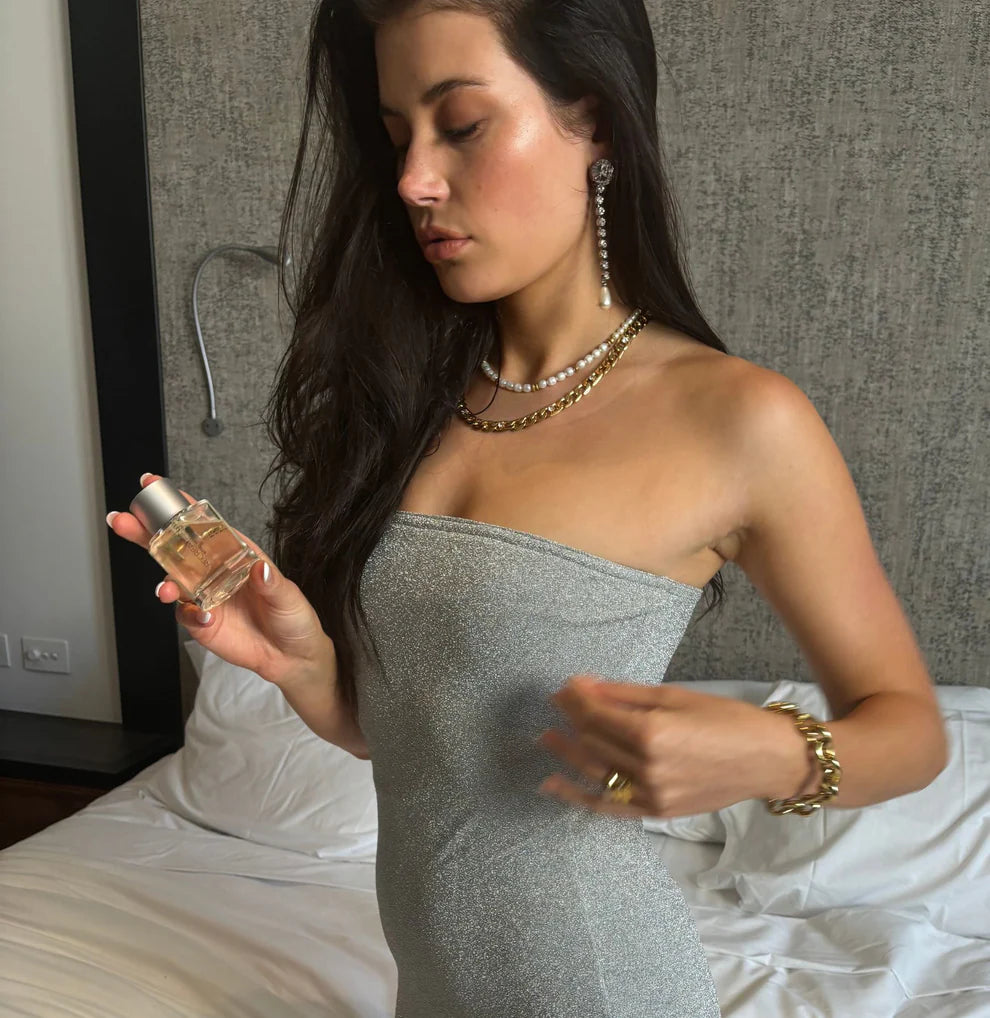 A cosmic bang of deep sandalwood, the inimitable iris flower and mellow musk flourish in a hazy star-crossed universe.