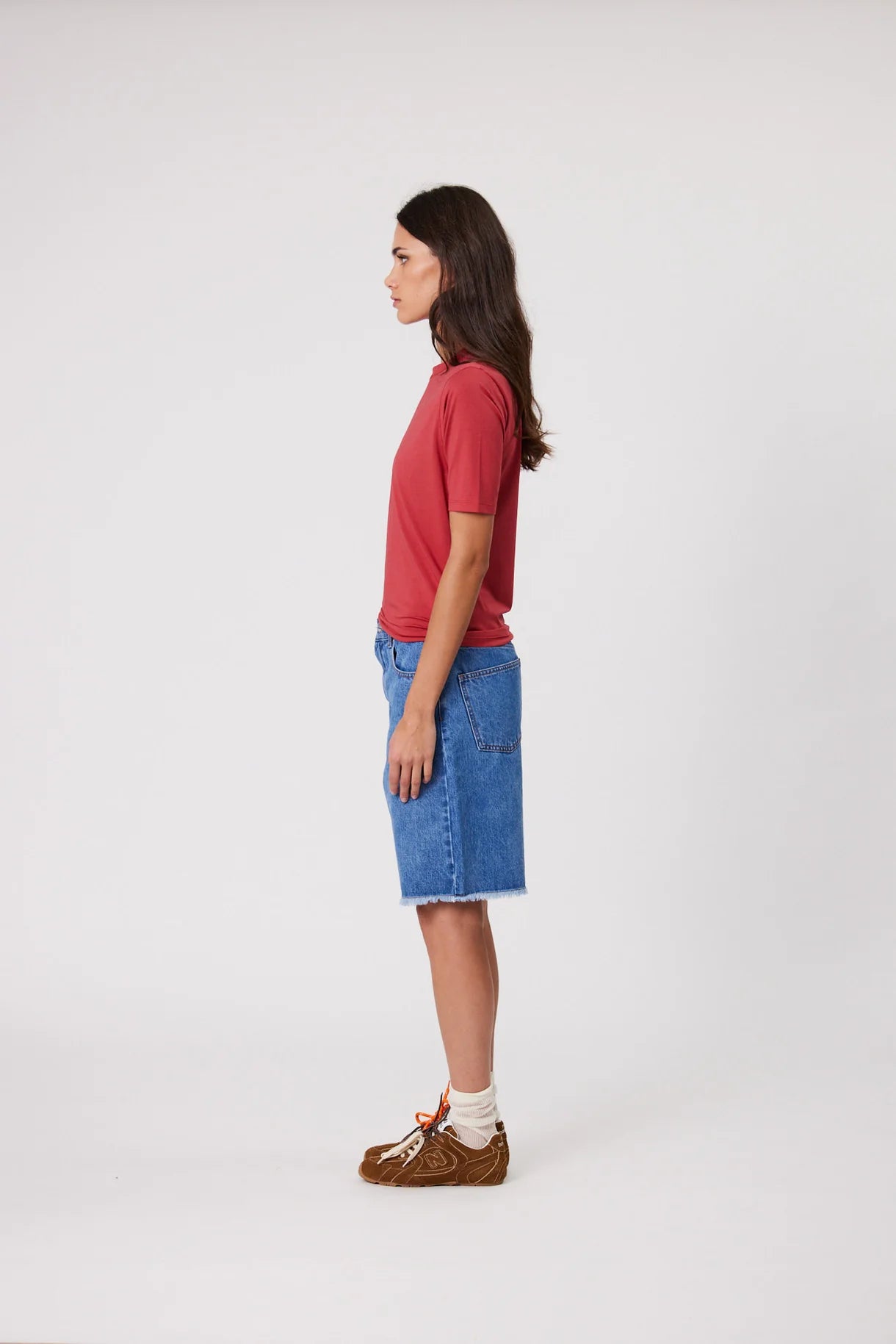 A building block to your wardrobe. The Alba is the perfect tee to style; dress up with a pair of suit pants or your fave denim for a more casual attire. Also available in long sleeve.