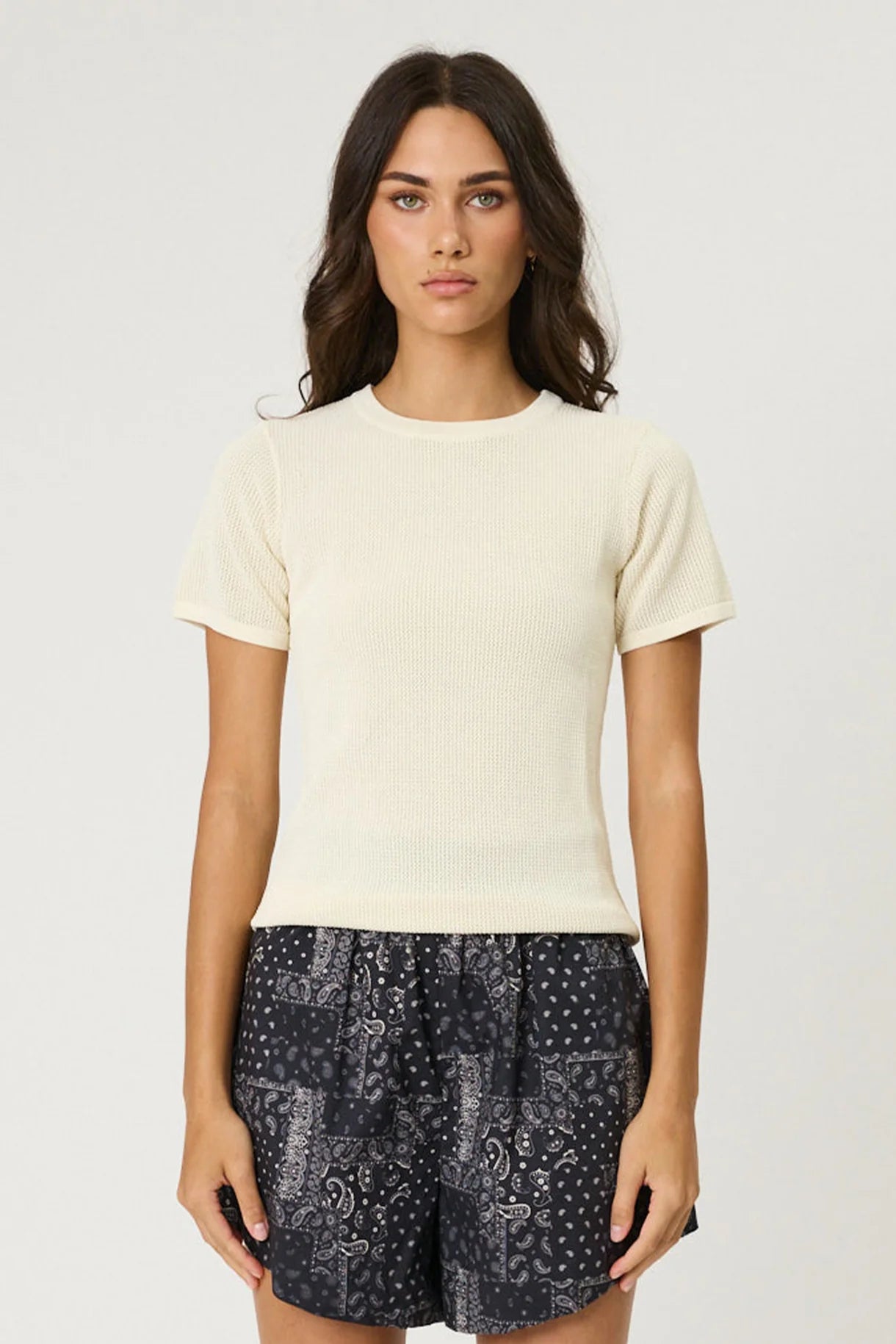 The ultimate summer layering piece. The Ayla tee is crafted in a semi sheer knit fabric and designed to be fitted. Pair with your favourite skirt or denim to mix and match your style.