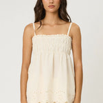 Crafted from delicate broderie fabric, the Leilani cami is a must have summer piece. Pair with the matching Leilani shorts for the perfect co ord ensemble.