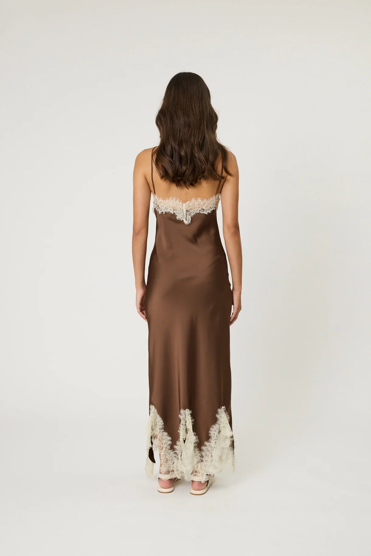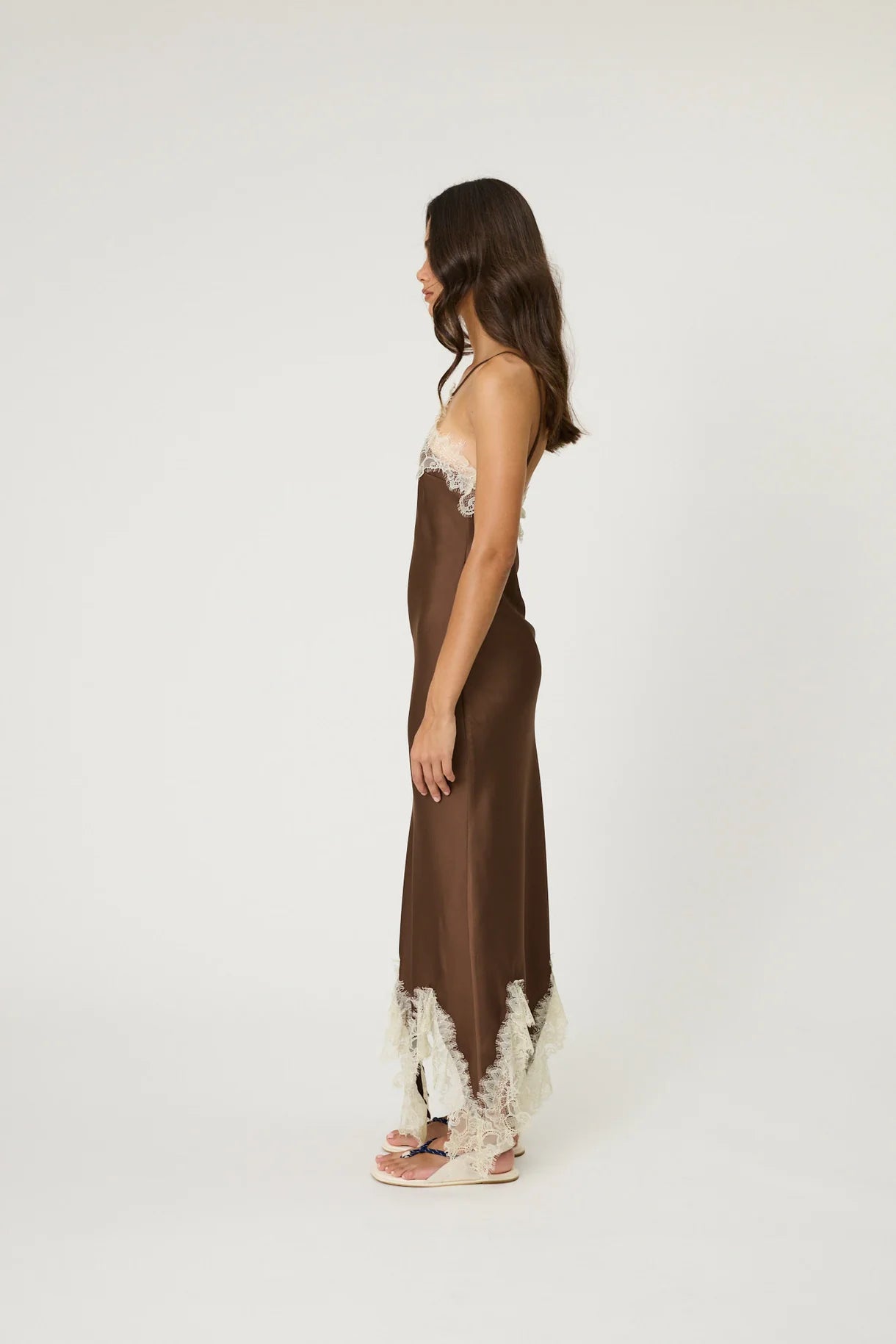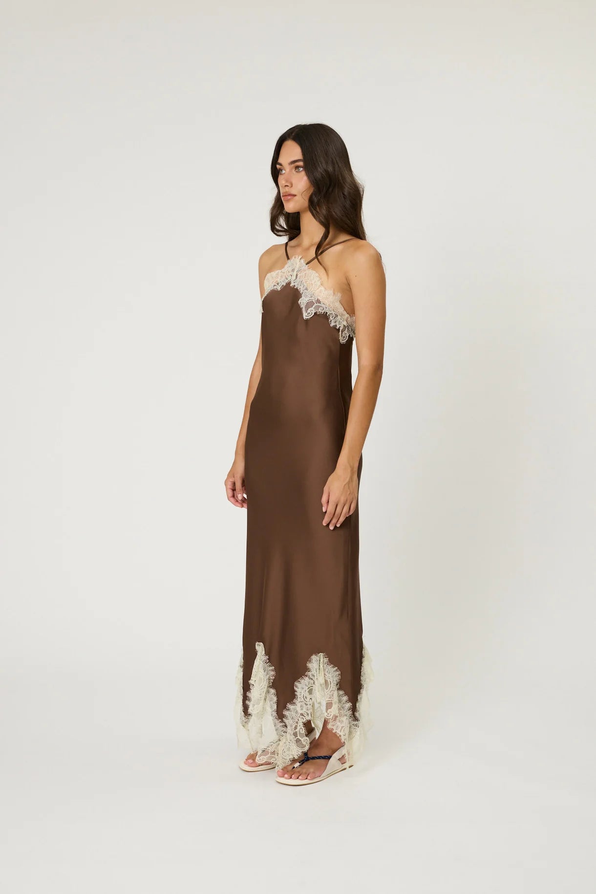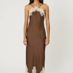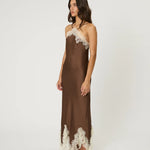 Steal the spotlight in the Rue Maxi Dress. Featuring cross front straps with contrasting lace trim. Also available in top length.