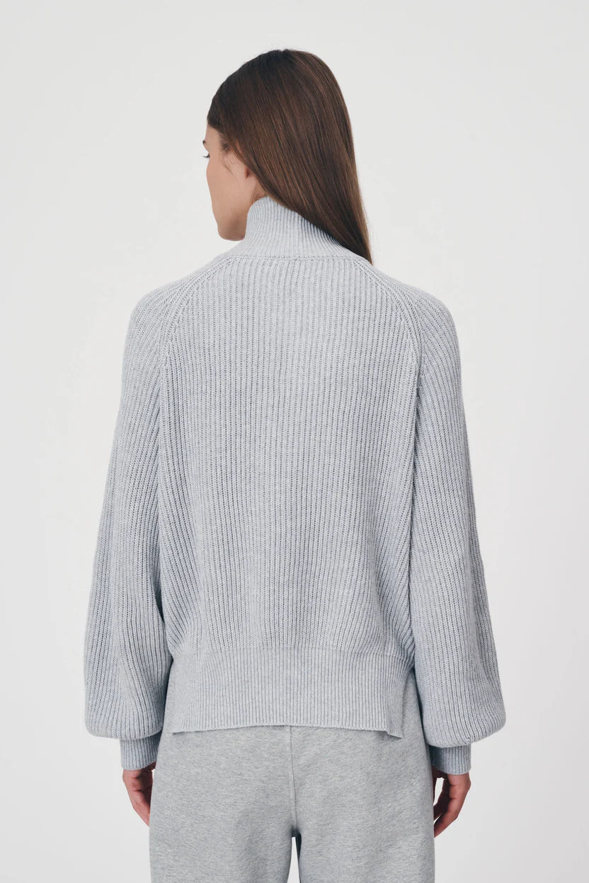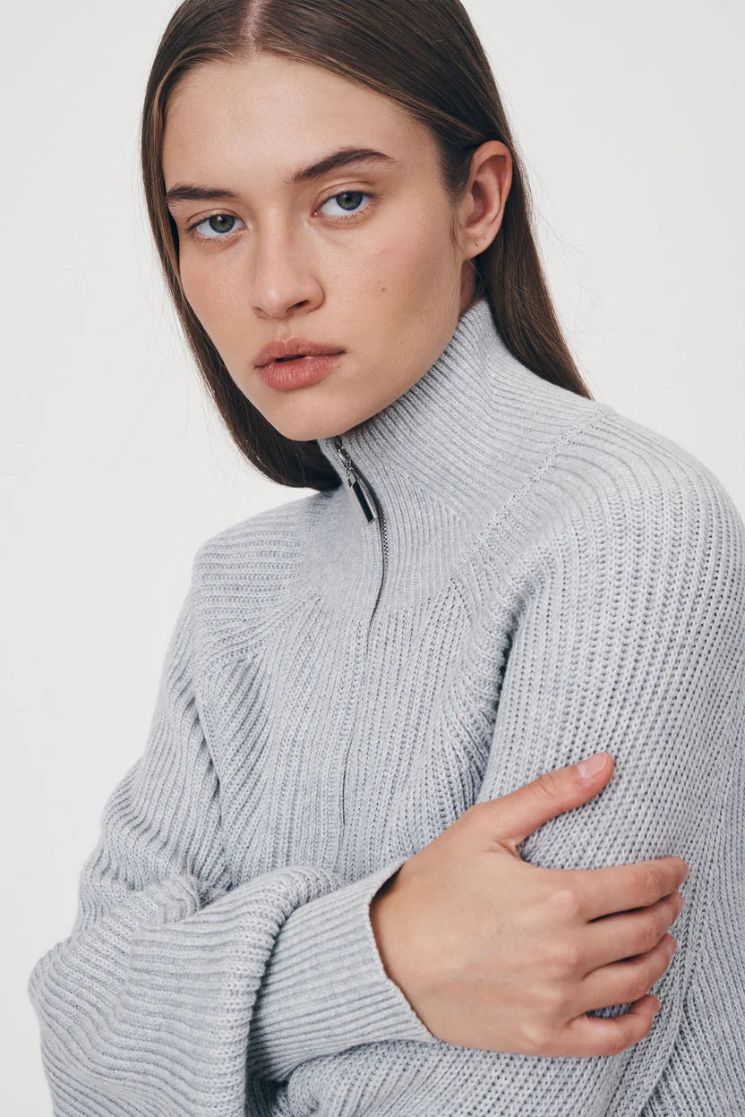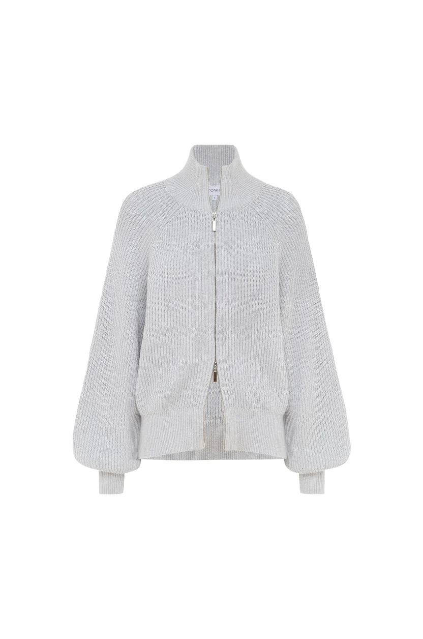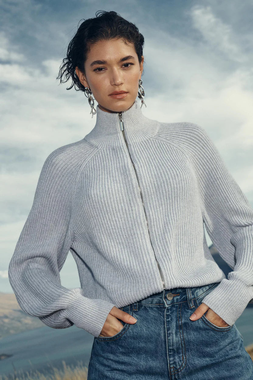 Introducing our Banjo Zip Knit Cardigan, a must-have for every closet. Meticulously crafted from zero-waste cotton knit, it provides style and comfort. In a timeless Grey Marle hue, its relaxed fit and cozy balloon sleeves elevate any ensemble. Complete with a convenient 2-way zip closure and rib knit detail throughout, it's the perfect layering piece