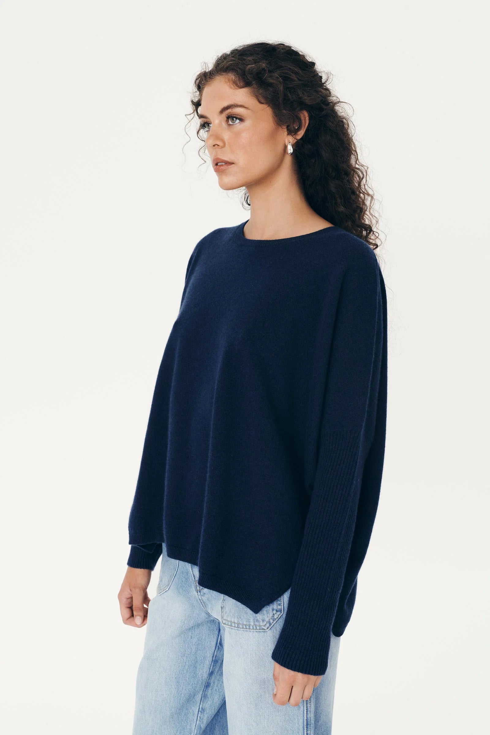 An elevated essential in merino wool and cashmere, the Enzo Knit Jumper is defined by a dropped shoulder and relaxed body, with fitted rib sleeves and side hem splits adding subtle structure.