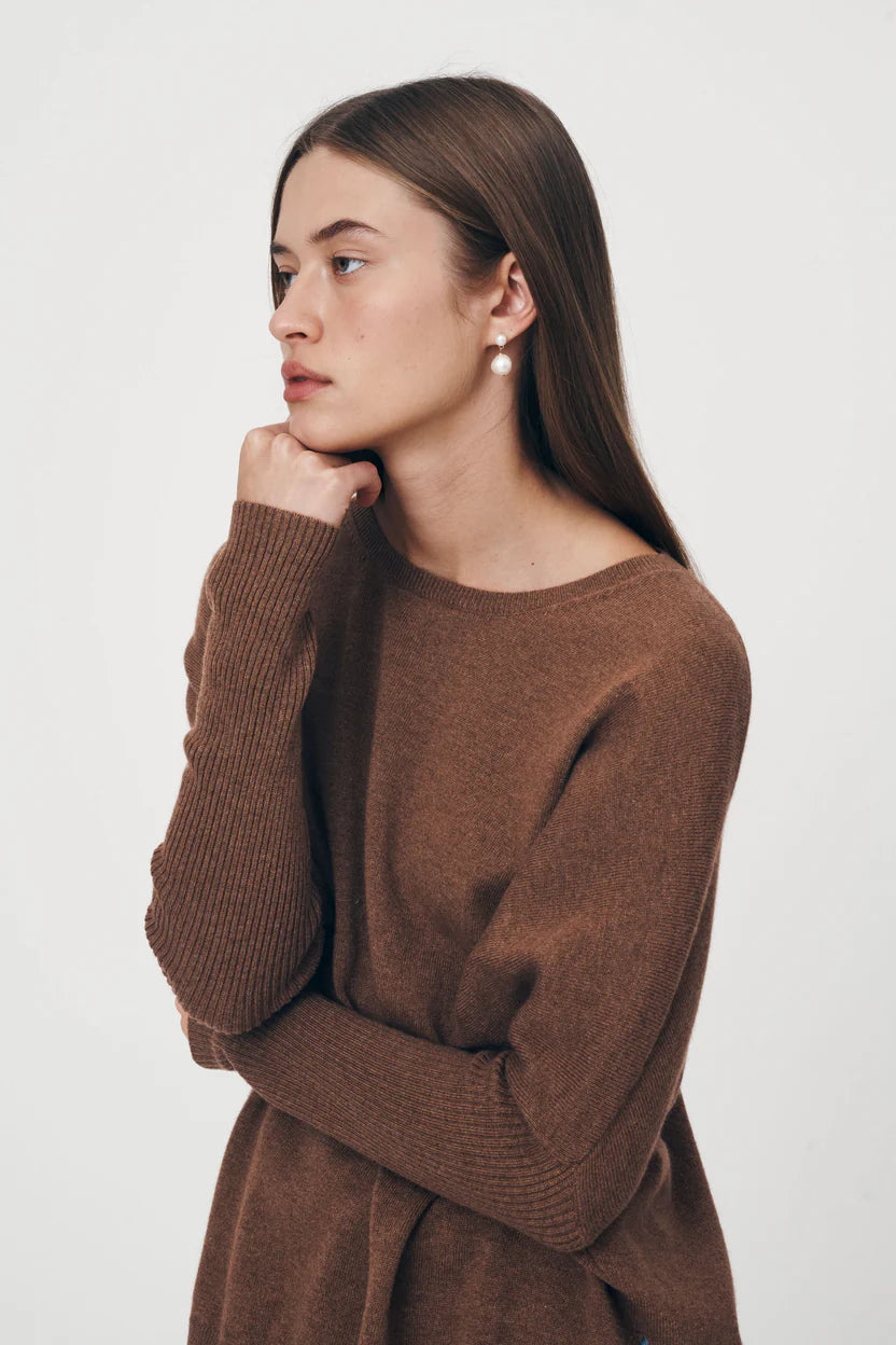 ROWIE - Enzo Merino Knit Jumper - Chestnut Brown