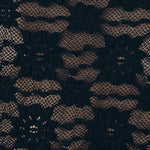 The Galo Tee in Noir. A fitted baby tee in semi-sheer sunflower lace, finished with cap sleeves and a boat neckline. An icon, reissued.