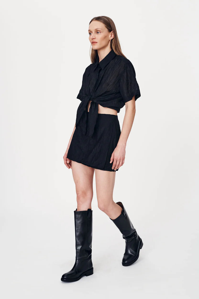 ROWIE - Jole Silk Mini Wrap Skirt - Noir