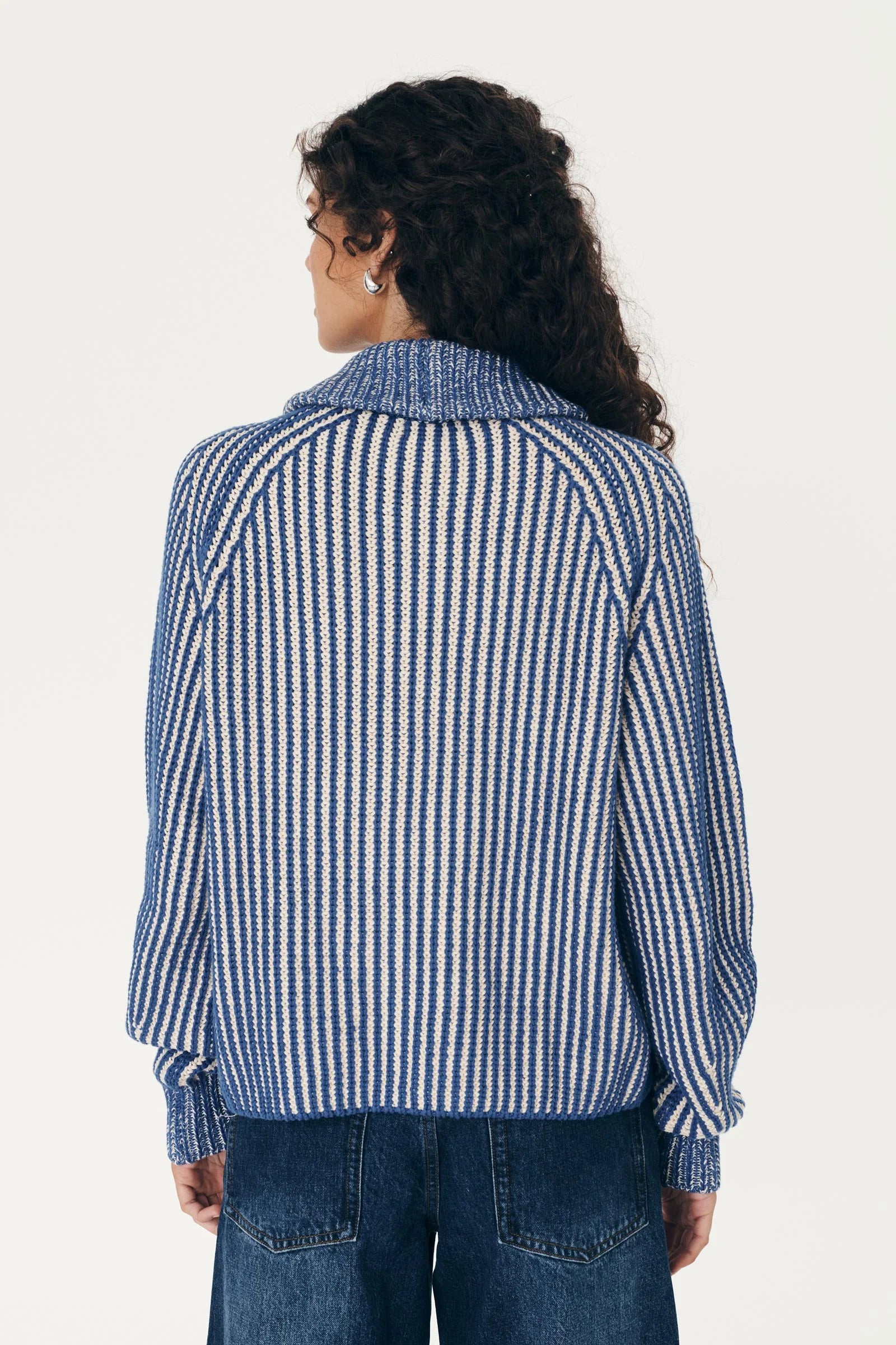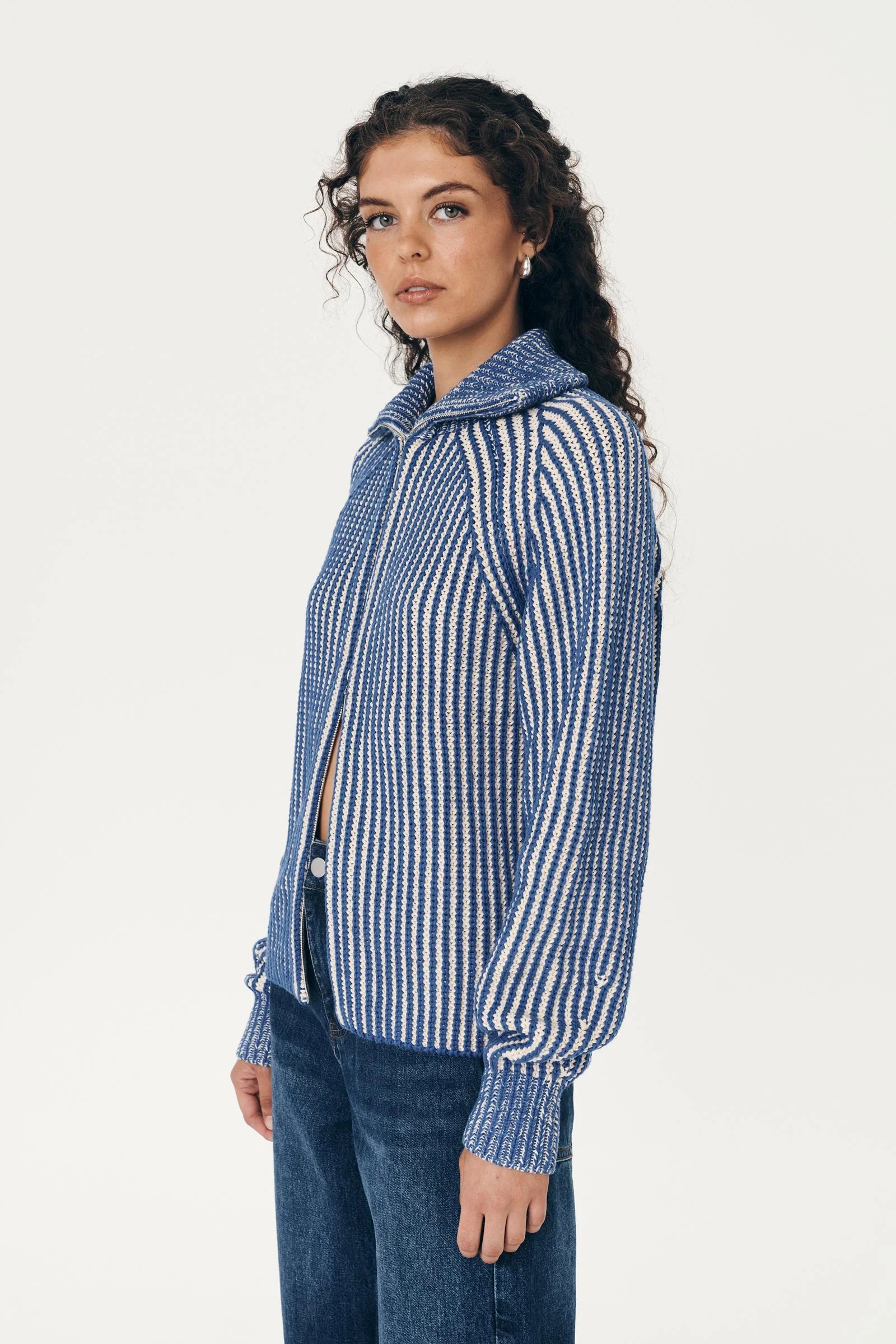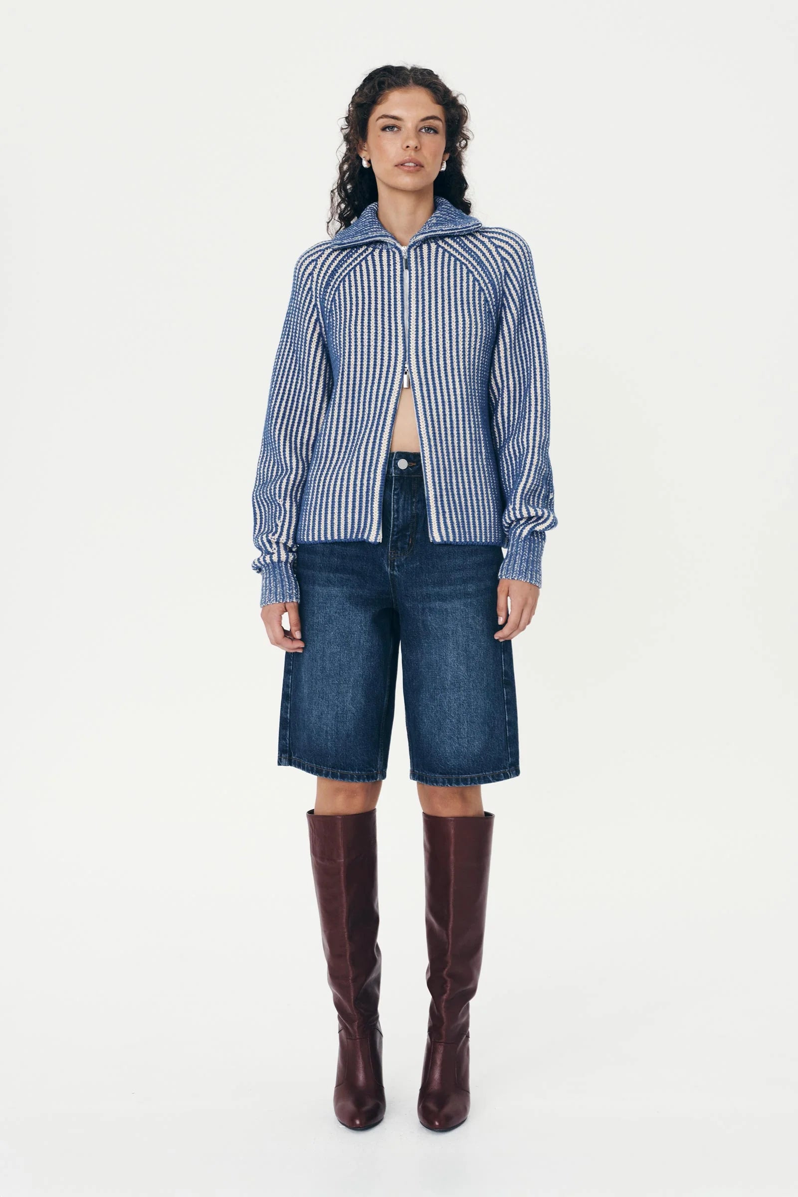 ROWIE - Markus Zip Knit Cardigan - Colbalt Creme