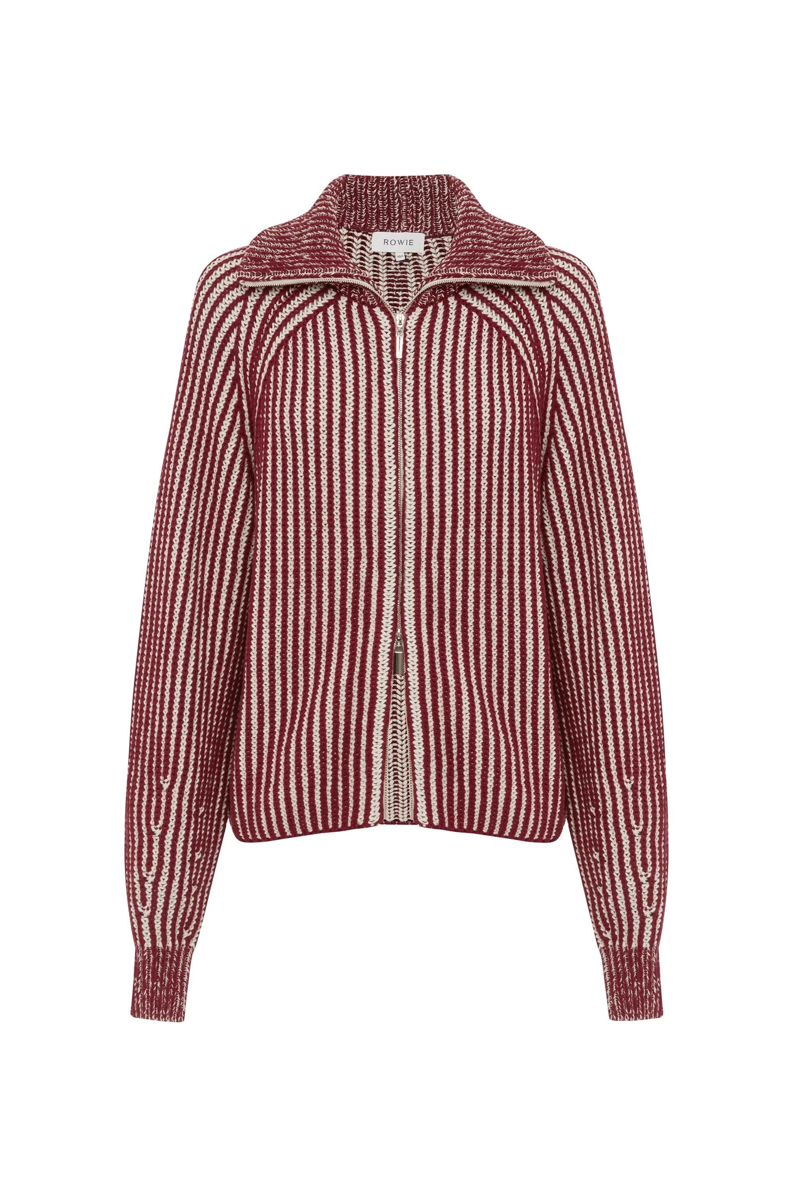 ROWIE - Markus Zip Knit Cardigan - Rust Red / Creme