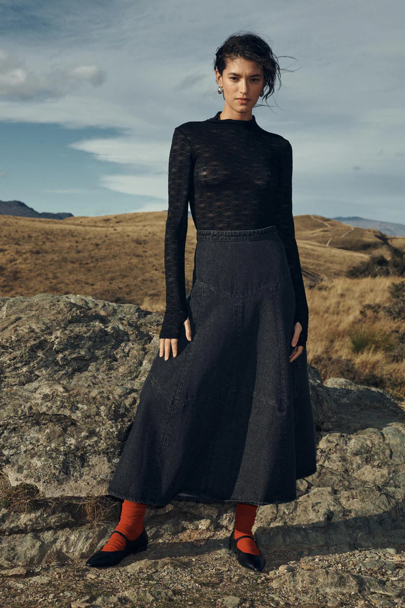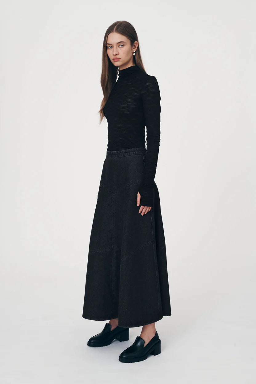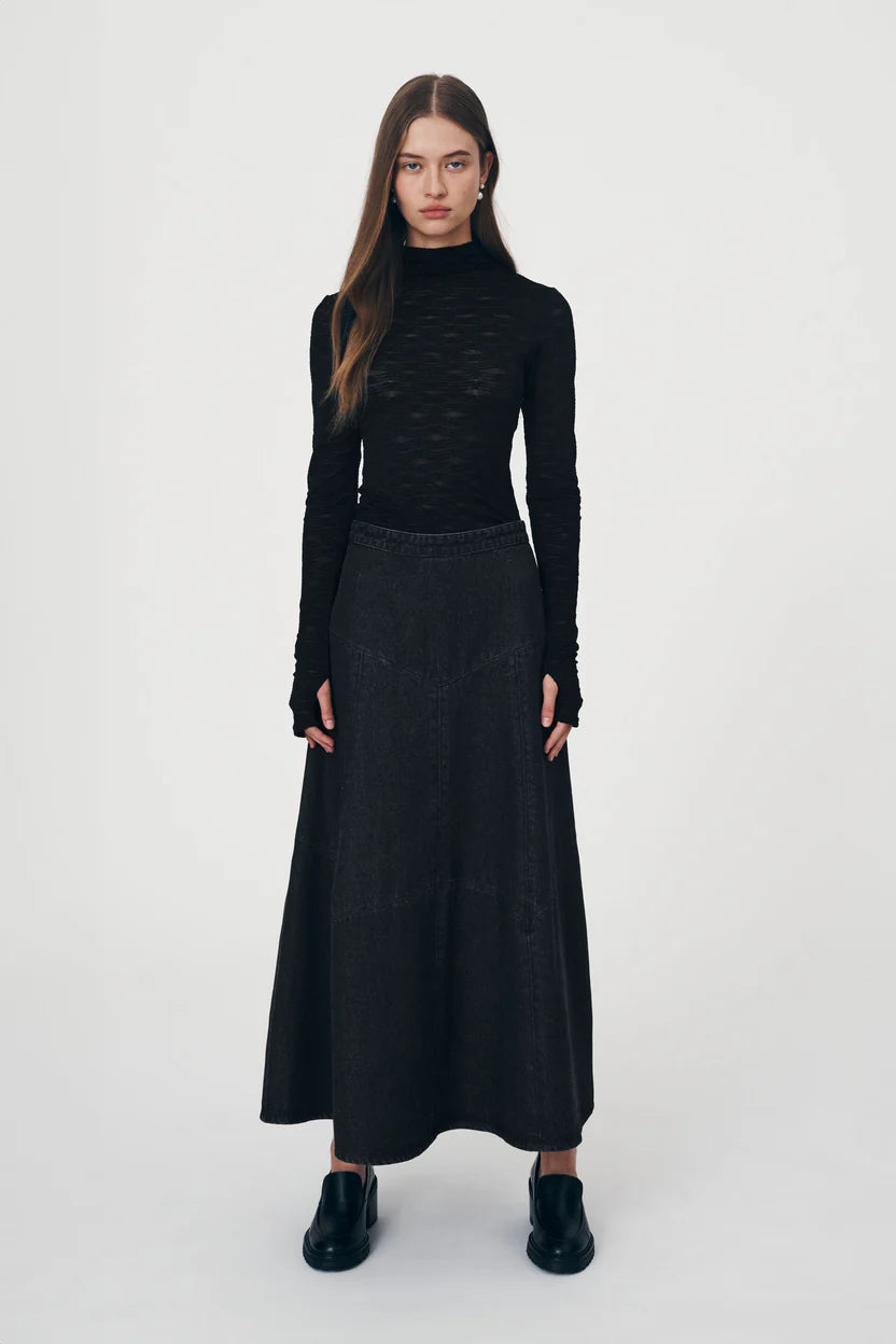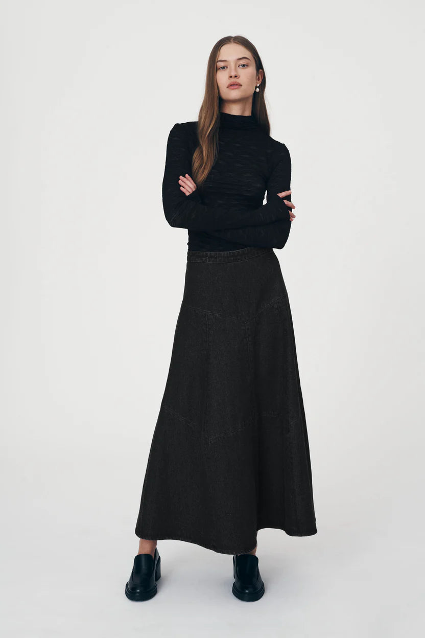 ROWIE - Paloma Organic Midi Skirt - Washed Black