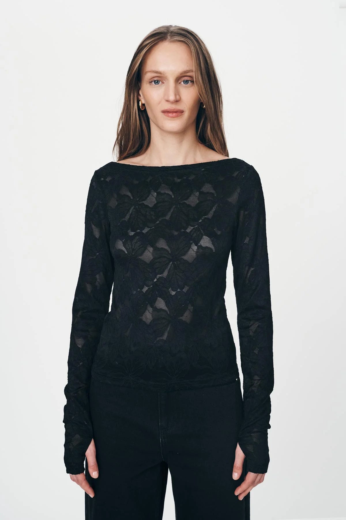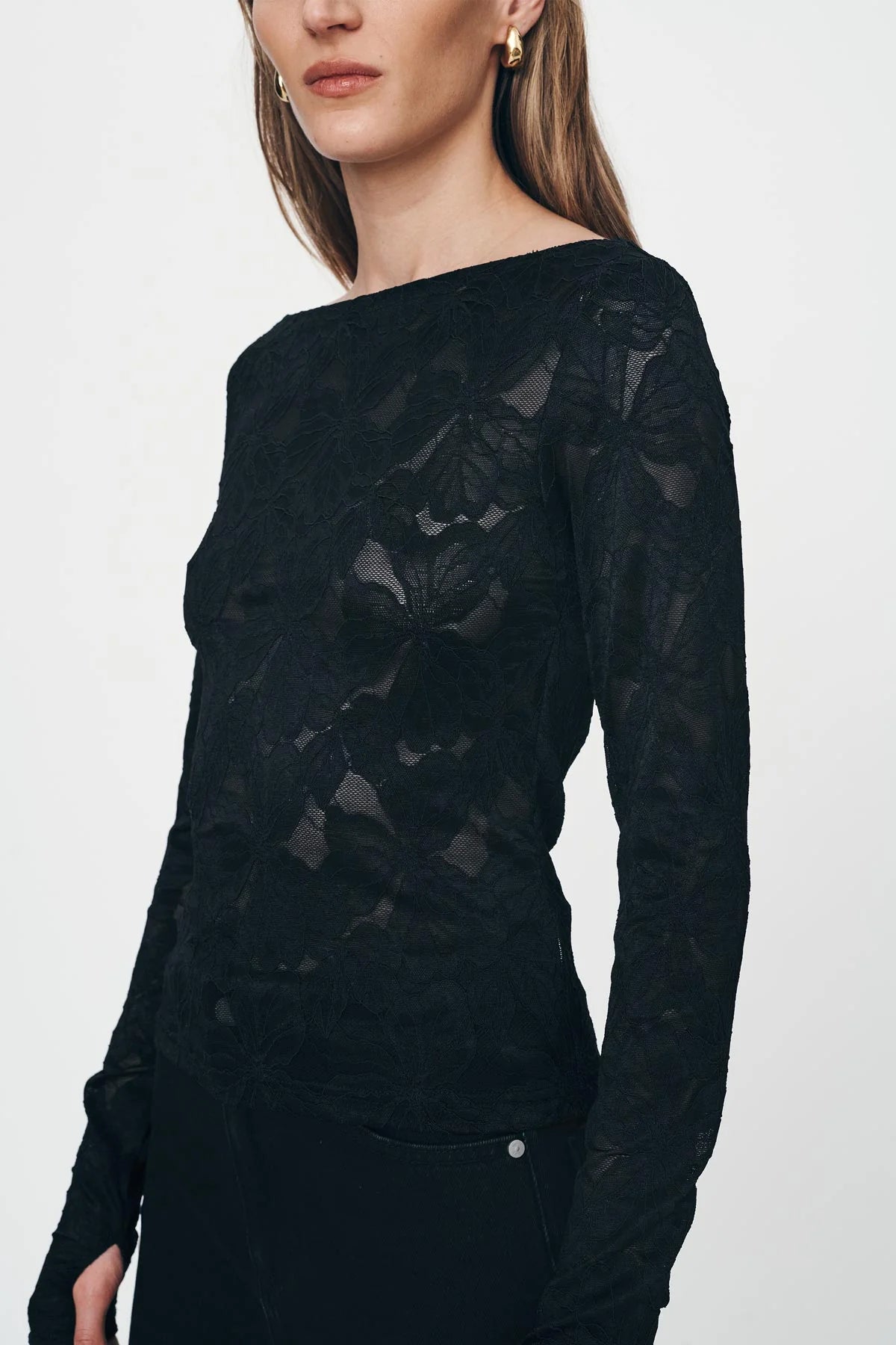 A cult-favourite reimagined. Inspired by the Galo, the Samantha Lace Top is a fitted long-sleeve design with a boat neckline, semi-sheer stretch lace, and functional thumbholes - made to layer or wear with confidence.