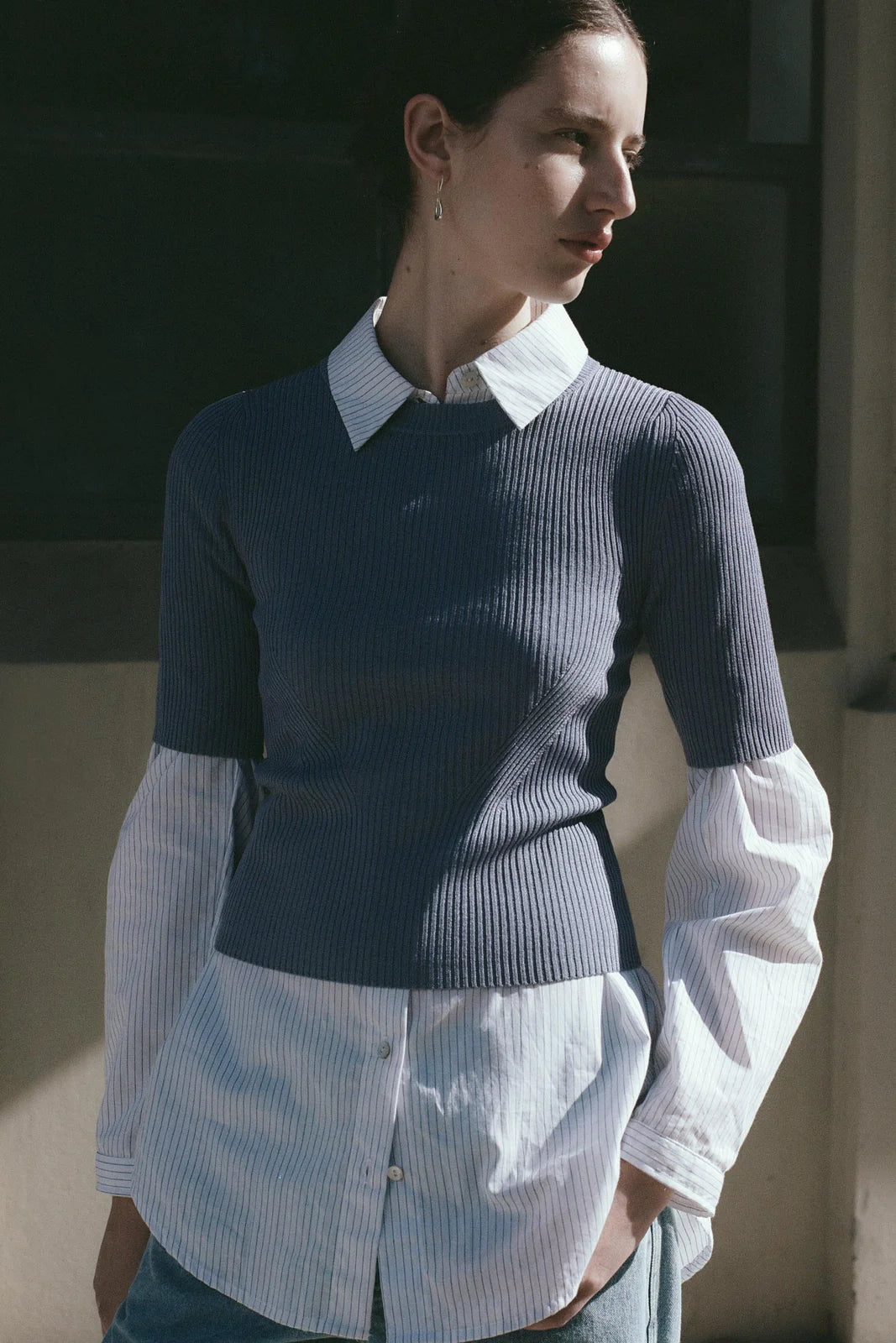 - Slim fit ribbed knit tee