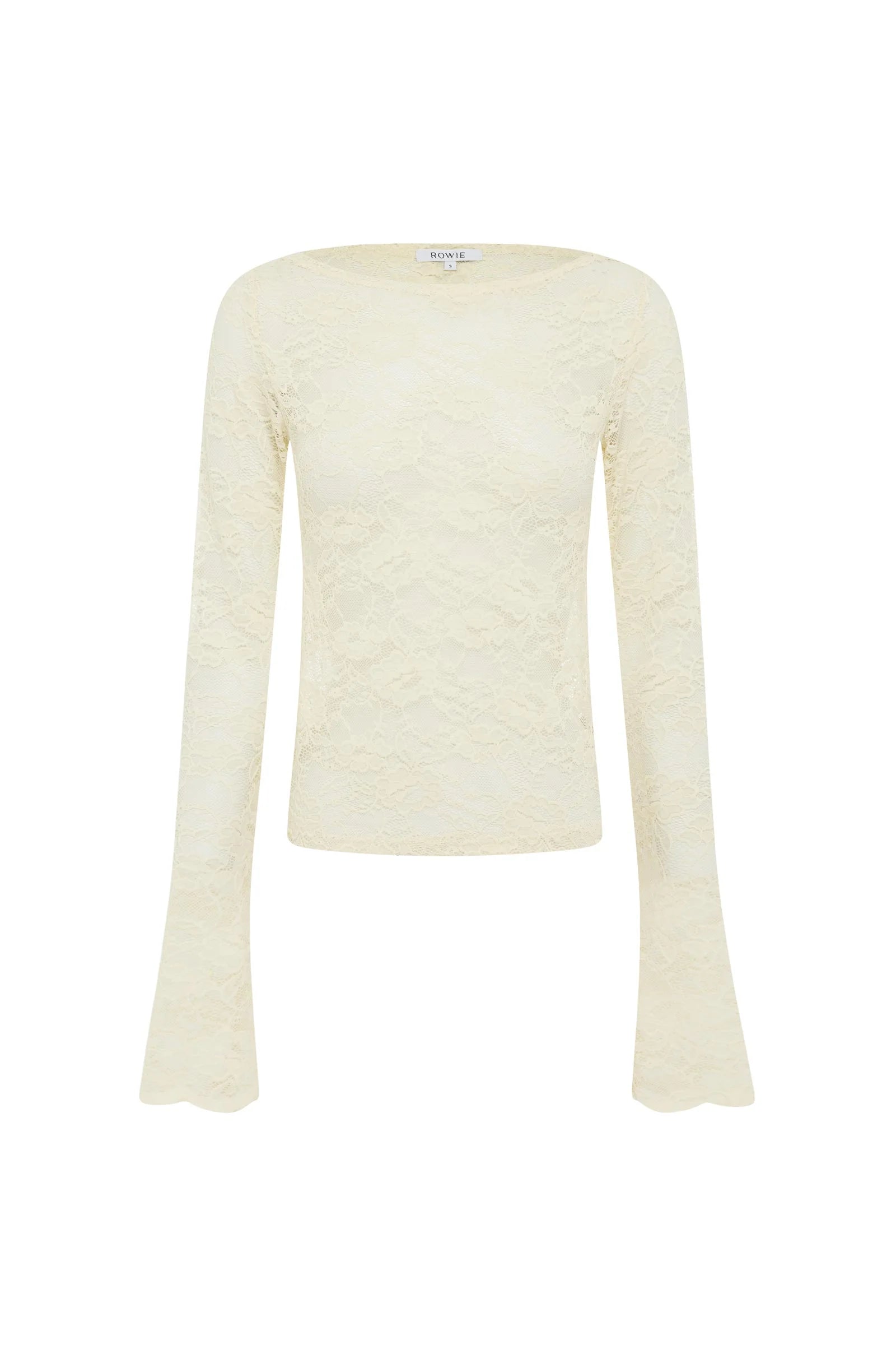 Delicate yet defined, the Tonya Rose Lace Top is crafted from sheer stretch lace with an intricate rose motif. Designed for a close fit, it features a boat neckline and scalloped bell sleeves that add soft movement. A balance of structure and romance, it’s a statement layer that speaks for itself.