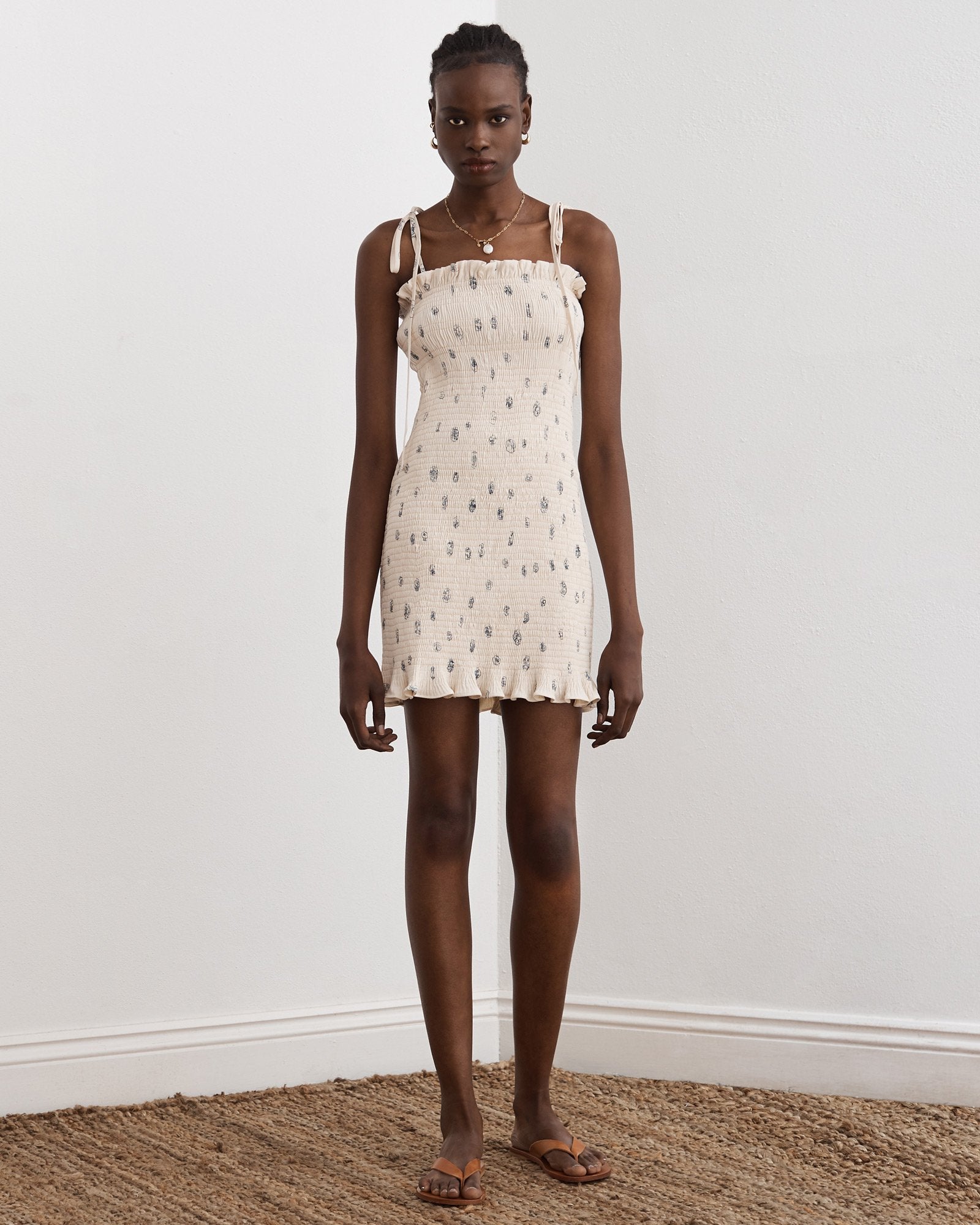 Our adored Demna Dress is flattering and stunning to wear. It features feminine shoulder ties and a ruched body, it’s the kind of piece that can be worn during the day and easily dressed up and special enough for a night occasion too.