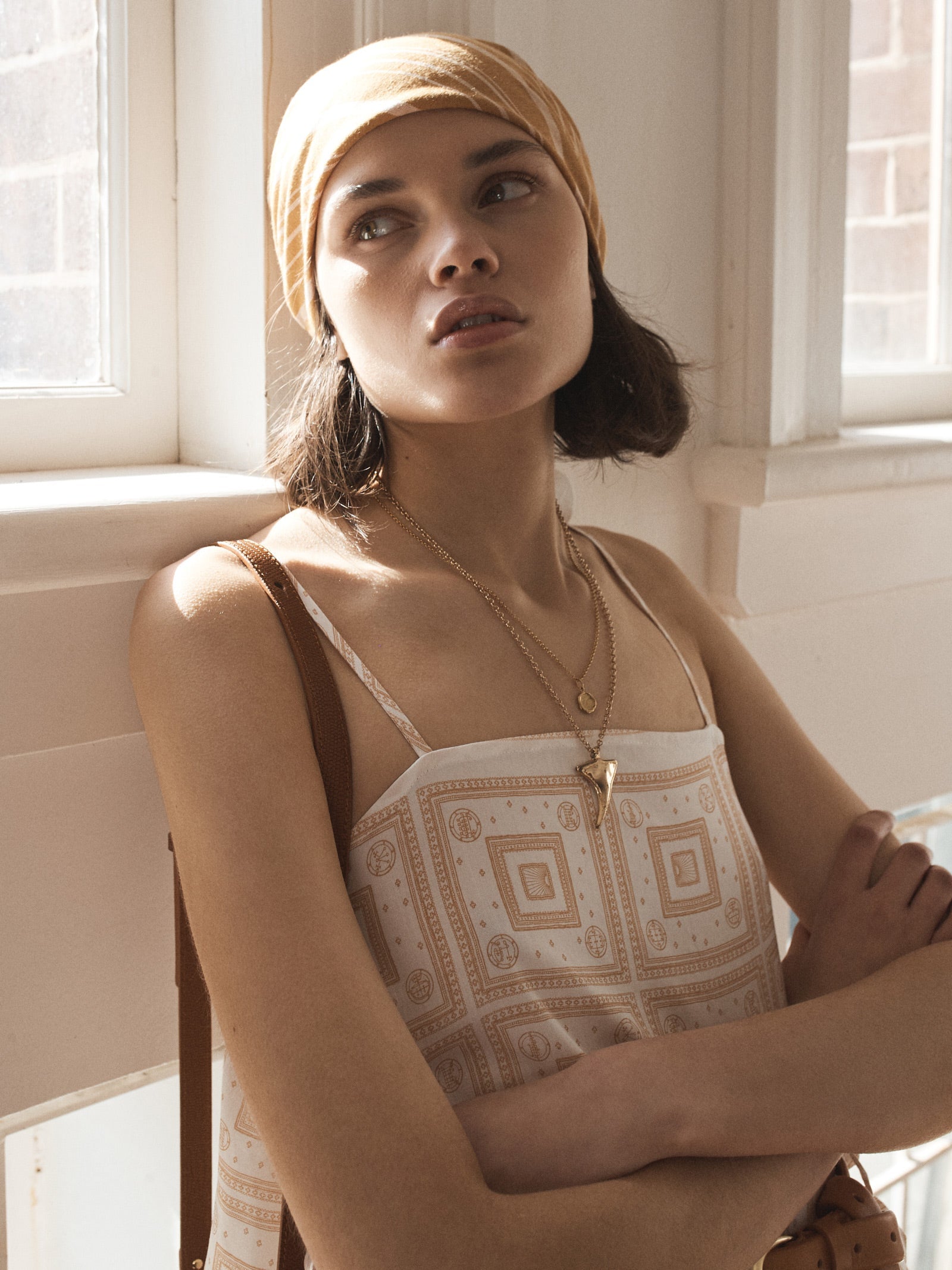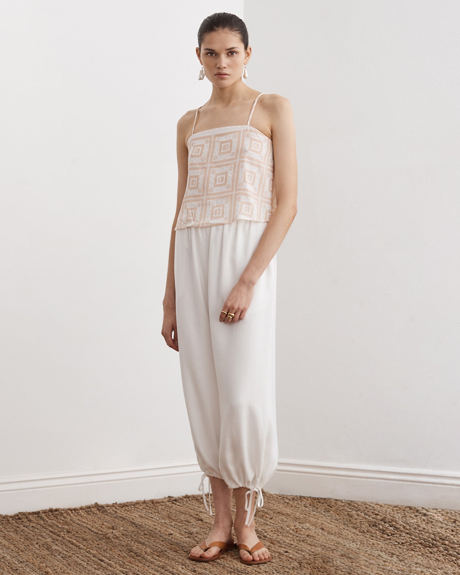 - Spaghetti straps with adjustable gold sliders
