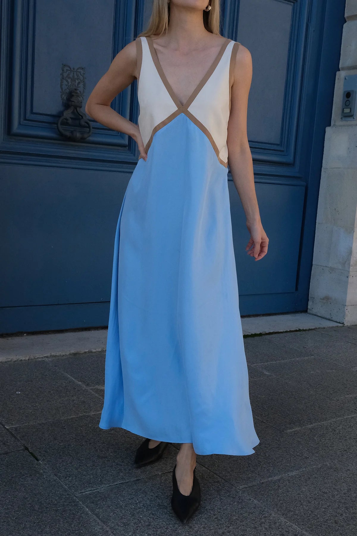 The Naomi dress is the perfect choice for summer weddings and garden parties. This elegant, floaty style has contrast colours and panel lines that create a flattering, relaxed silhouette. Featuring a fluid skirt and v-neckline, style yours with heels or flats.
