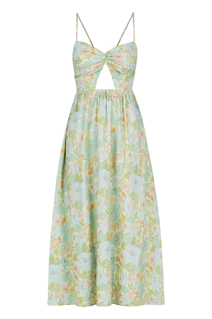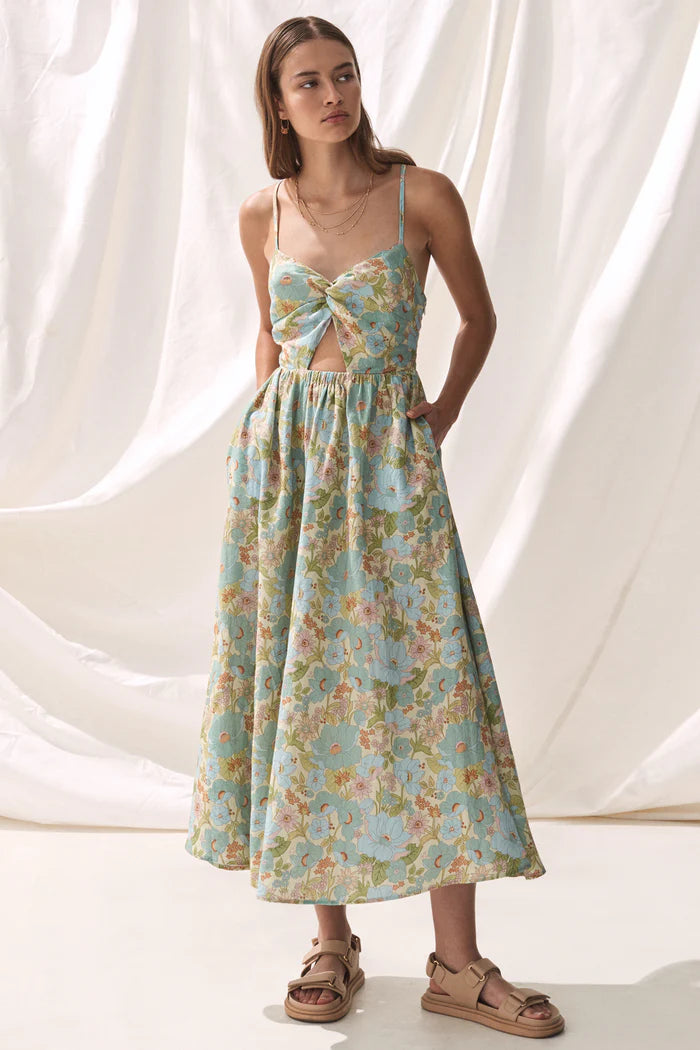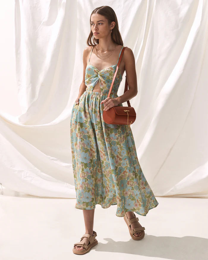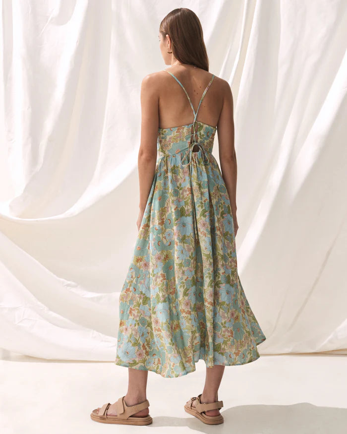 We love the feminine yet modern appeal of the Alessa Dress. Featuring a twist front sweetheart neckline and small cut-out on the front, the back has a lovely lace up detail, allowing for fully adjustable straps. The waist is elasticised for an easy fit. Also featuring side seam pockets on the fluid skirt, it sits at a lovely low calf level.