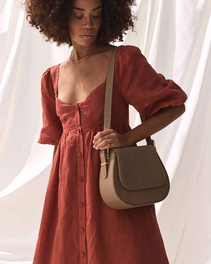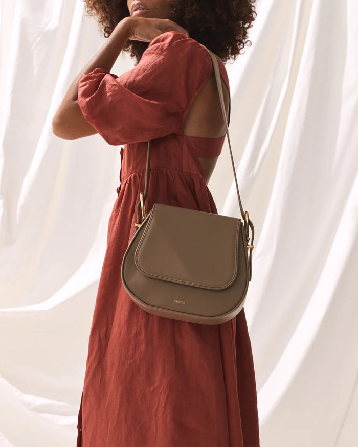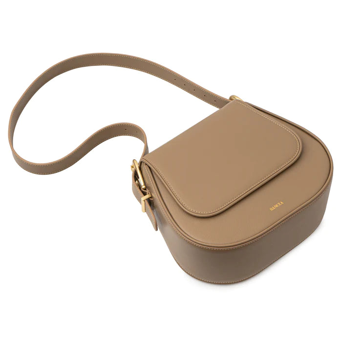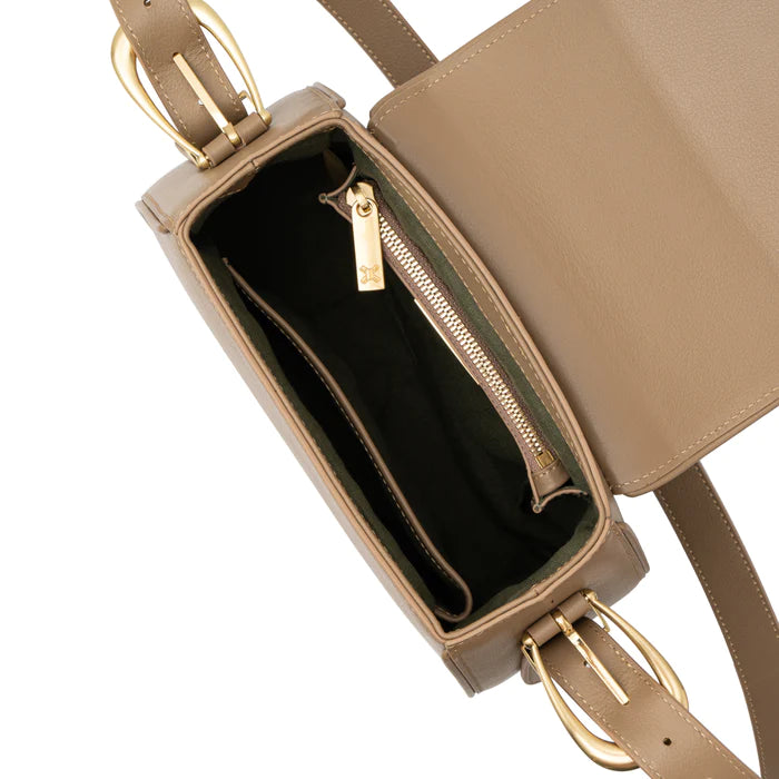 The Elias is a clean and chic bag that has been designed to fit all the daily essentials. The streamline body features a simple magnetic closure flap. The highlight of the bag is the custom designed brushed gold buckle and belt keeper that feature on both sides of the bag meaning that the shoulder strap is easily adjustable at both ends.