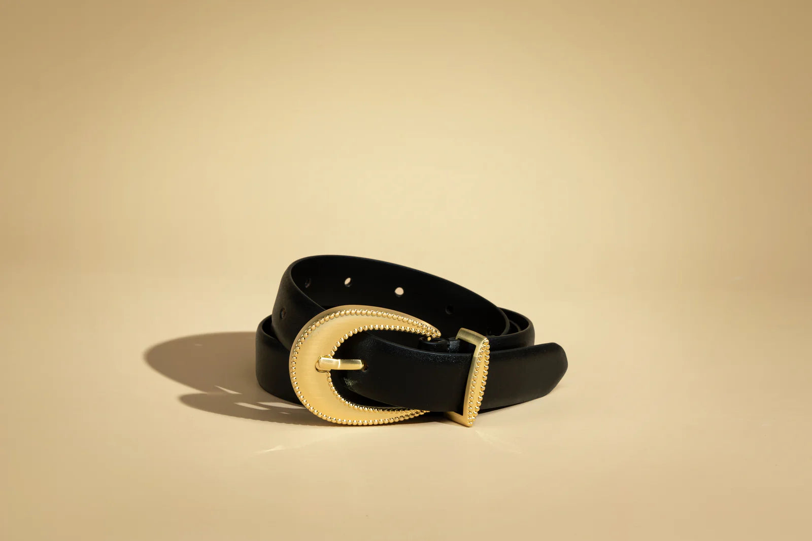The Mazara belt will add a touch of sophistication to every outfit. The supple full grain leather is accentuated with a rounded, sculptural buckle with textured brushed gold that was custom designed in-house. Pair with your favourite jeans or tailored pants.