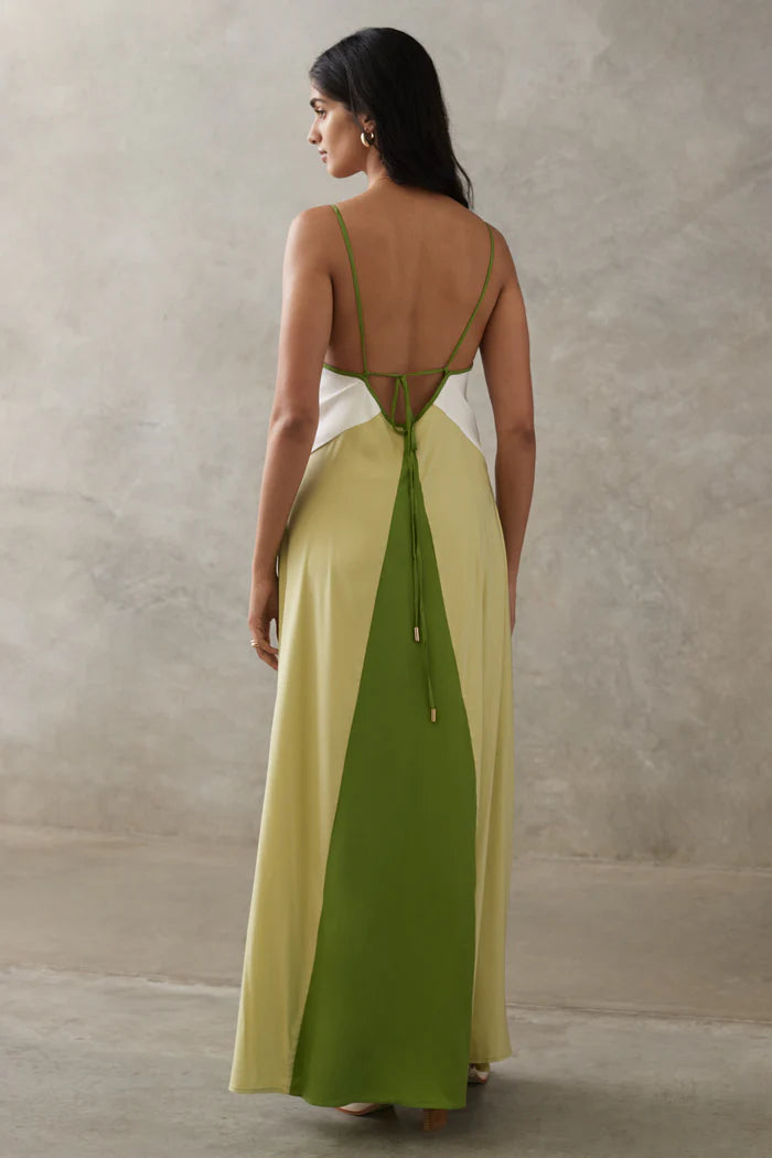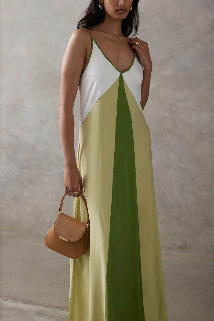 If you love an elegant, easy-to-wear staple dress, then the Prima Dress is just for you; sophisticated and effortless with a relaxed fit. Colour blocked with the colours of summer; it is the perfect event dress. Featuring a side zipper for ease and tie-up back. Pair with our Cybil bag to wear to an event.